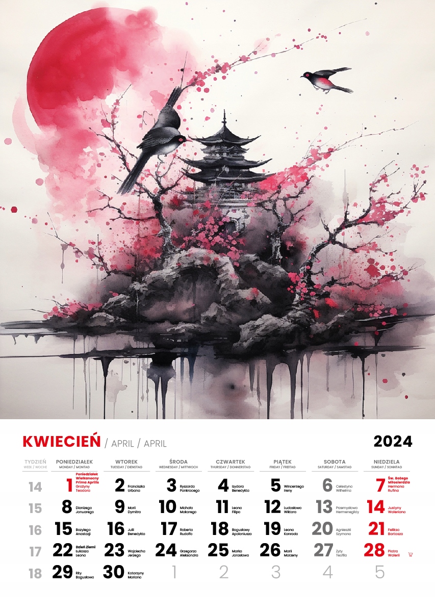 140 Календар 2024 A3 гейша Японія вертикальний 13 карток