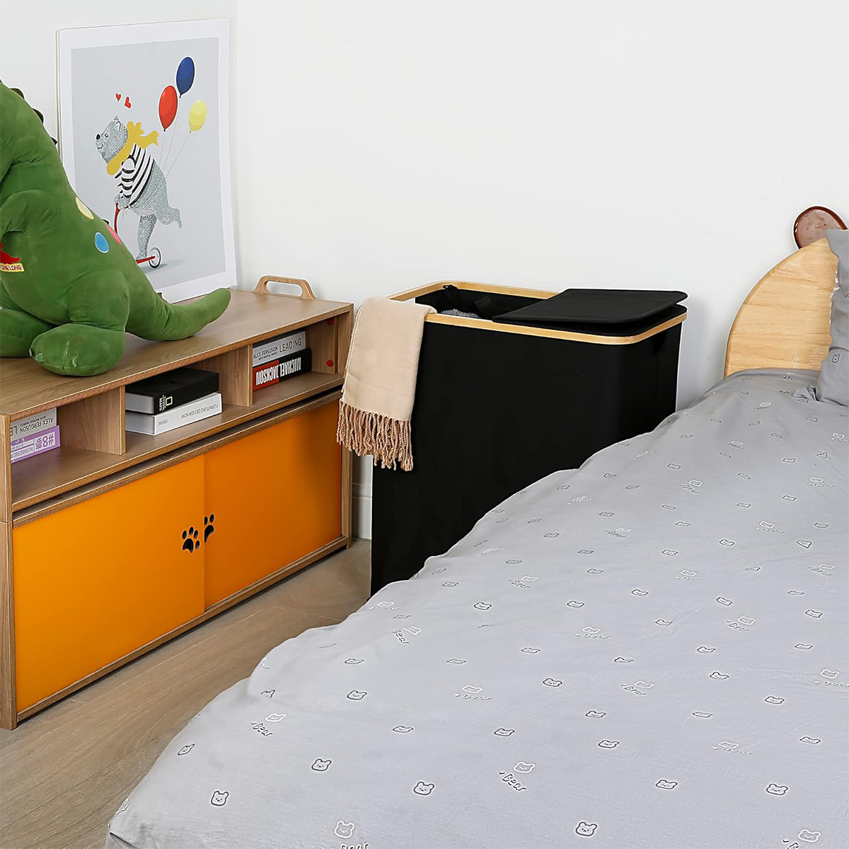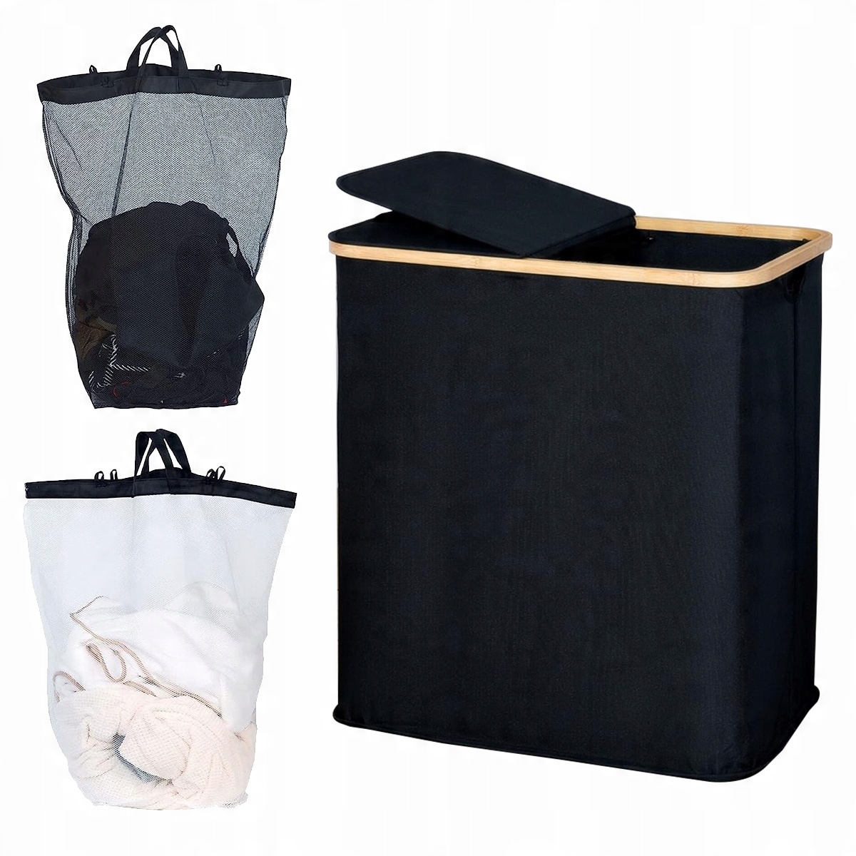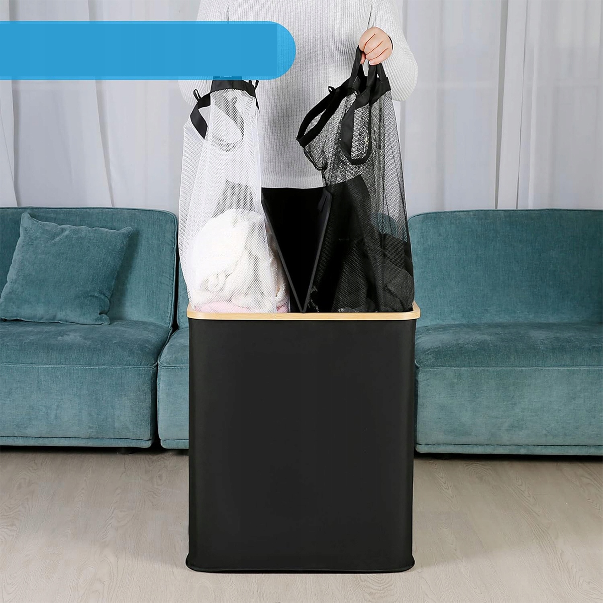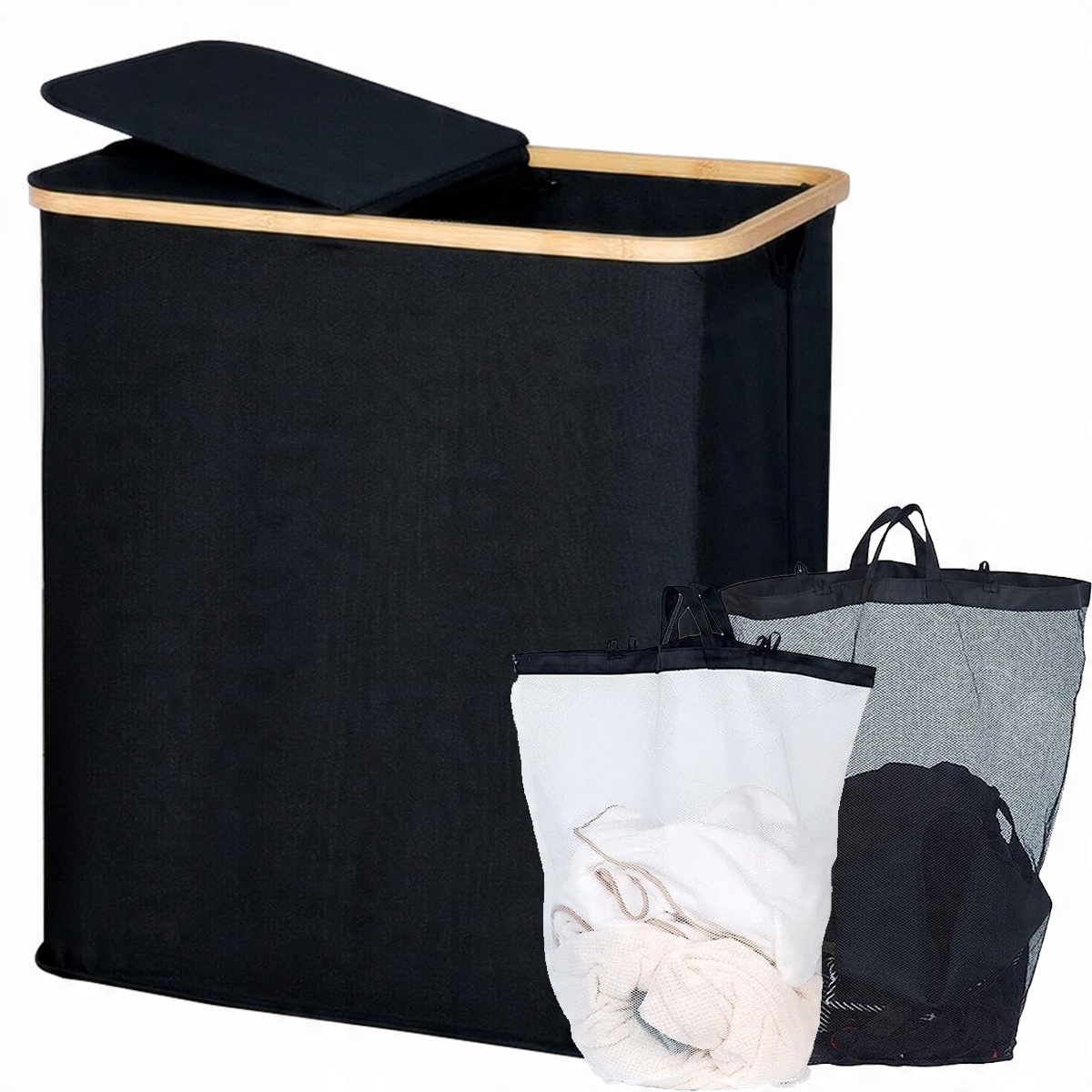 Корзина для белья с крышкой, 2 перегородками, большой разделенный контейнер для грязного нижнего белья, хранение белья с 2 съемными мешками для белья, 140 л (57*37*65 см), черный h1>