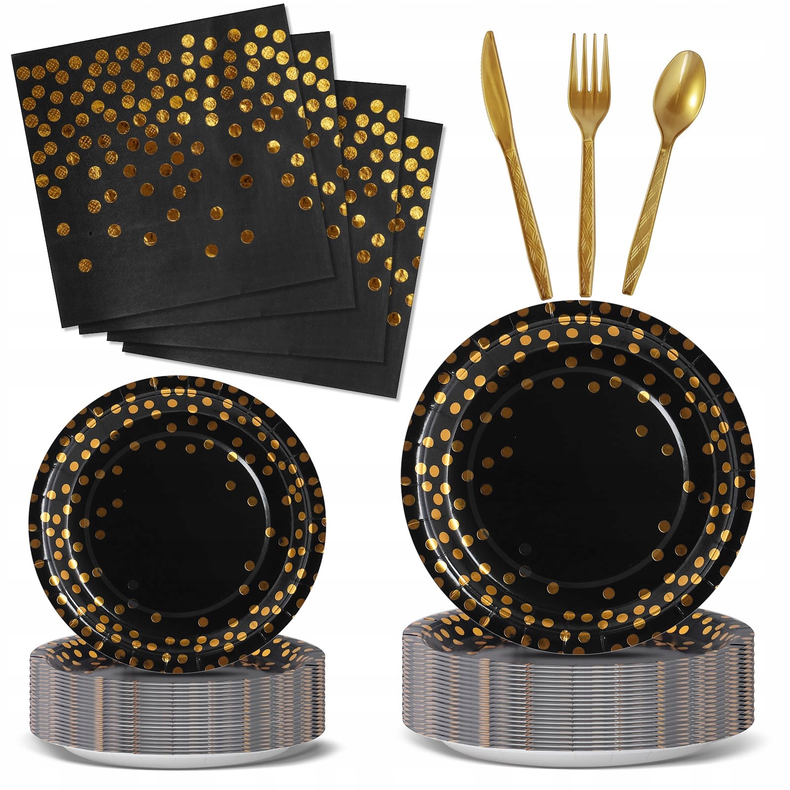 144 штуки одноразовые ужины Set Set Party Plachy File Specults Specults Party Plaints Black