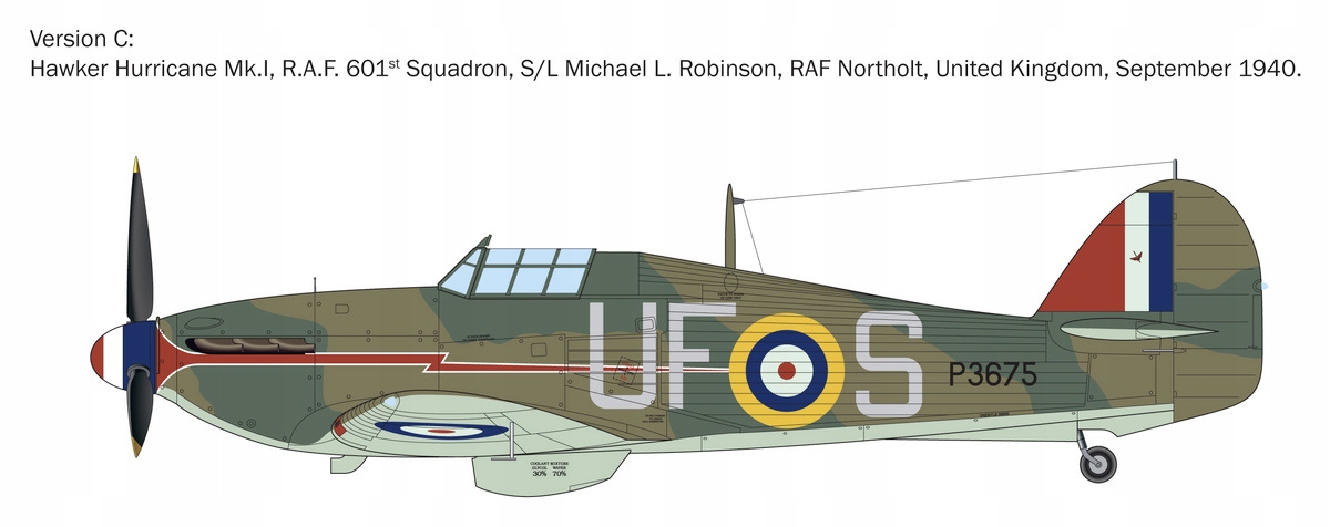 Ураган Hawker был наиболее широко изготовленным и использовавшимся британскими британскими истребительными истребителями ВВС Британских Королевских сил в начале Второй мировой войны. Ураган питался 12-цилиндровым охлажденным жидким двигателем Rolls-Royce Merlin с более чем 1000 л.с., что позволило ему достичь скорости, превышающих 500 км/ч. Его вооружение в форме восьми пулеметов, 7,7 мм Браунинг, обеспечило твердый огонь. Хотя он был медленнее и аэродинамически более устаревшим, чем его знаменитый коллега Supermarine Spitfire, с которым он разделял свои оперативные обязанности во время битвы за Британию, ураган был более долговечным, прибыльным и легче поддерживать и ремонтировать. Кроме того, было легче пилотировать, что позволило быстрее обучать пилотов, что сыграло ключевую роль в обеспечении победы во время битвы за Британию. Знаменитые ASES RAF, такие как Дж. Джонсон, В. Вейл и Р. Стэнфорд Так, вошли в ураган в бою.