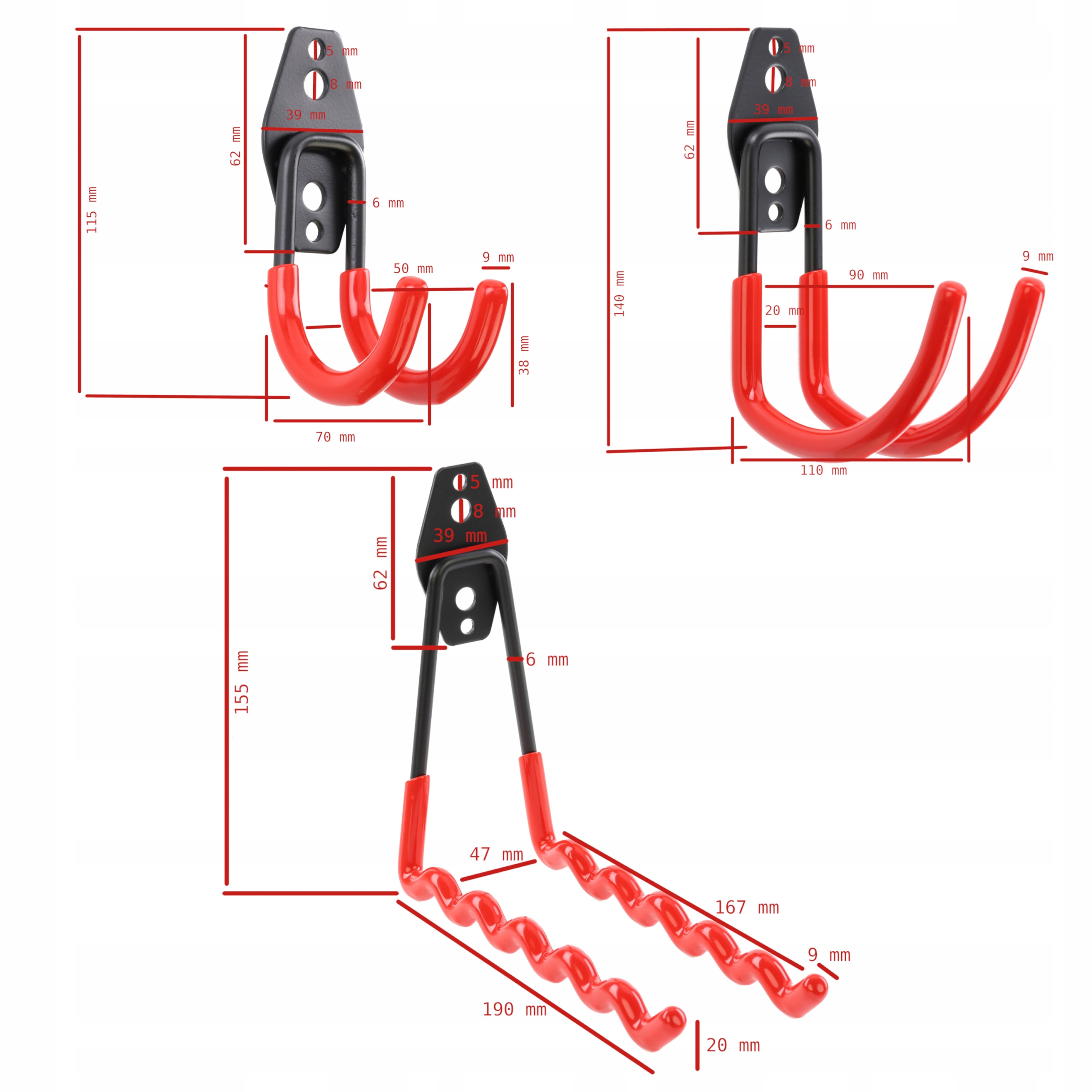 Конструкция и функции: изготовлен из прочной, порошковой стали в черном, устойчивости и долговечности. Их уникальные руки, покрытые толстым красным защитным слоем, выполняют двойную функцию: они обеспечивают определенную сцепление для подвешенных объектов, защищая их от царапин и повреждений.