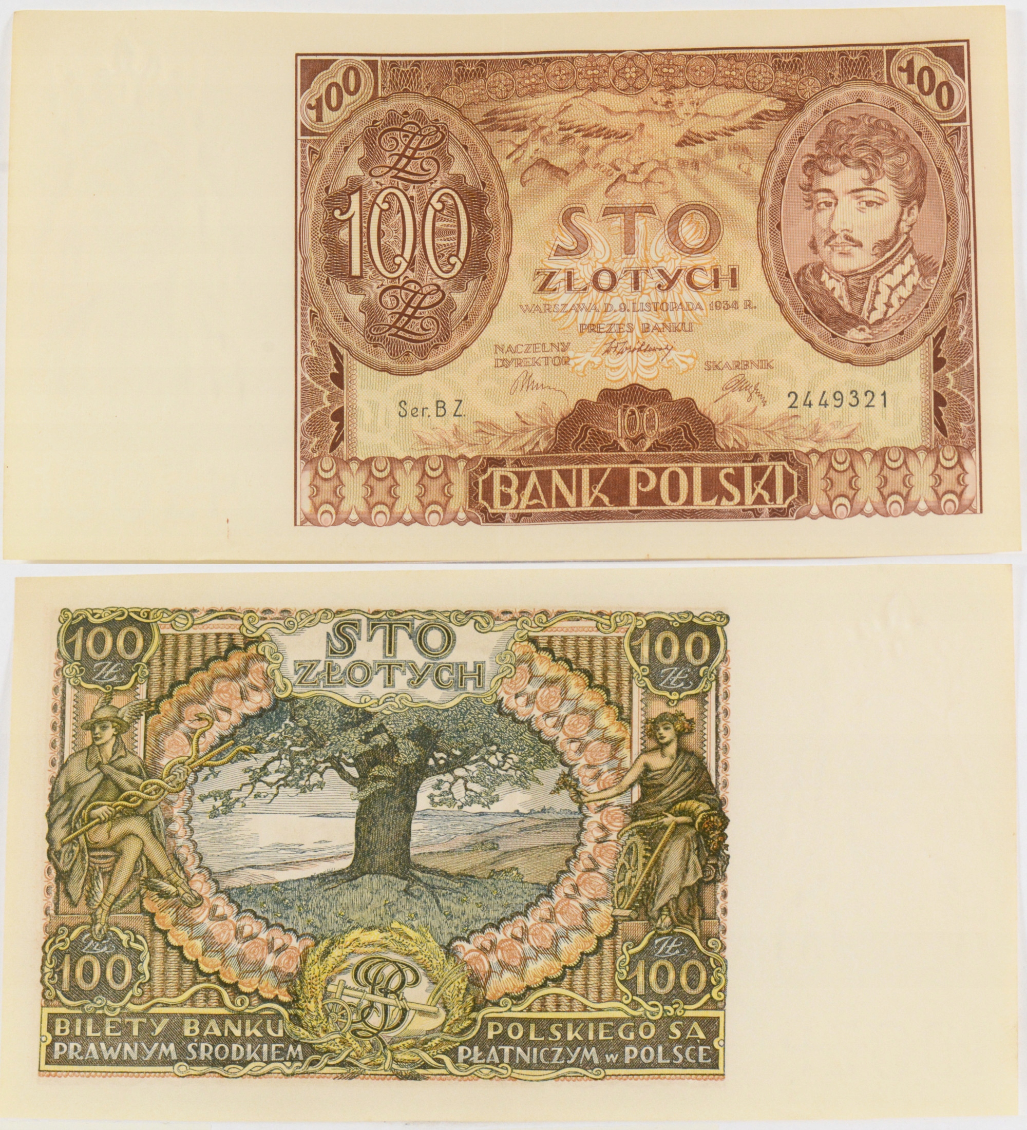14ХО. БАНКНОТА 100 ЗЛЫХ 1934 ГОДА СЕРИЯ: BZ СОСТОЯНИЕ: I UNC 21/10
