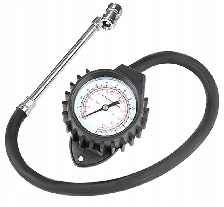 Манометр для шин высочайшего качества с рабочим диапазоном 15 бар/22 OPSI. Хотя его конструкция небольшая и легкая, он может справиться с колесами грузовиков, легковых автомобилей и фургонов. Манометр имеет металлический наконечник, защищающий от повреждений.