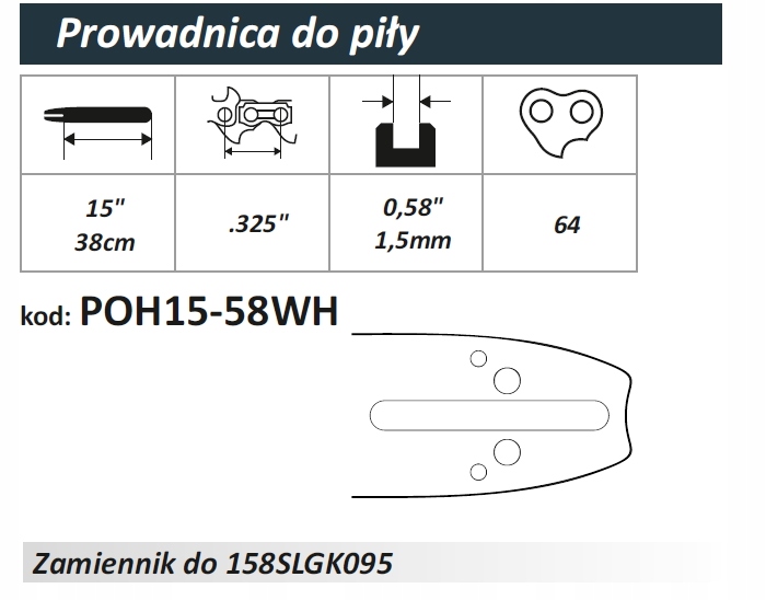 ШИНА 15 ДЮЙМОВ, 325 1,5 + 2 ЦЕПИ 64 ЗВЕНЬЯ HUSQVARNA MAKITA DOLMAR NAC