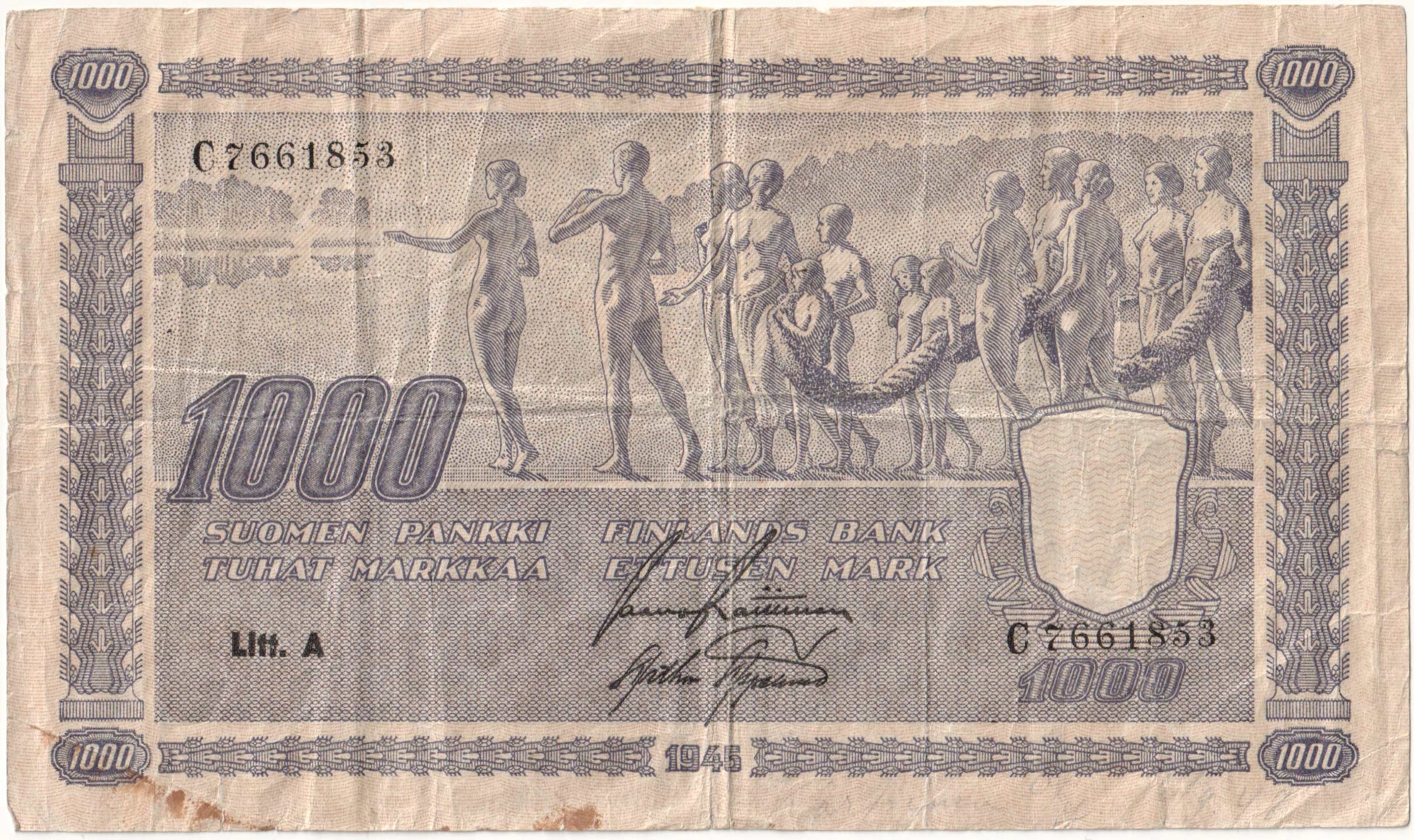 15.db.Фінляндія, 1 000 Марккаа 1945 рідкісний, св.3+