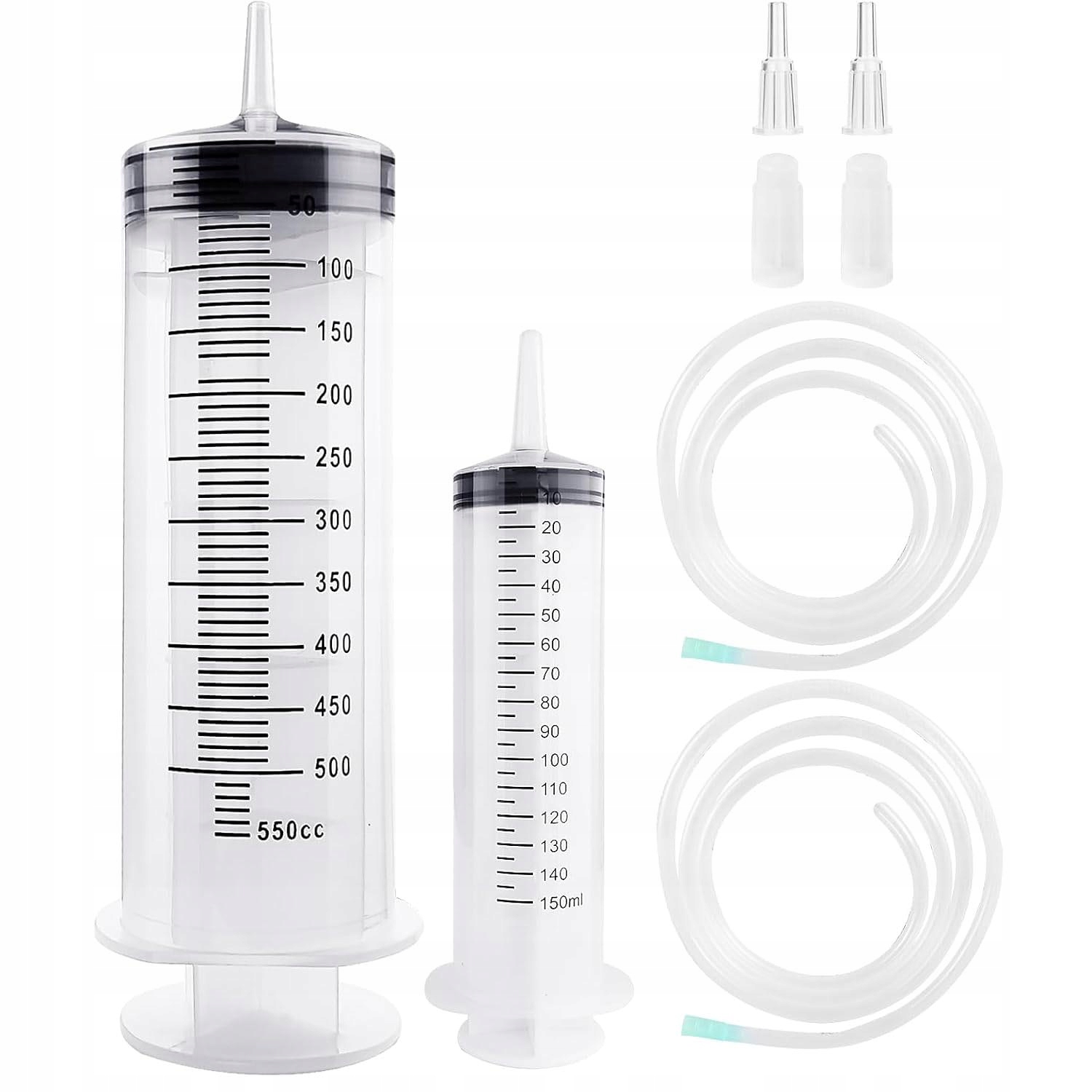 🏡🏡🏡【Набор из 2 шприцев】: Вы получите два шприца, 150 мл и 550 мл, а также гибкий шланг диаметром примерно 5 мм и длиной 1 м, все упаковано отдельно для обеспечения безопасности и гигиены. продукт.