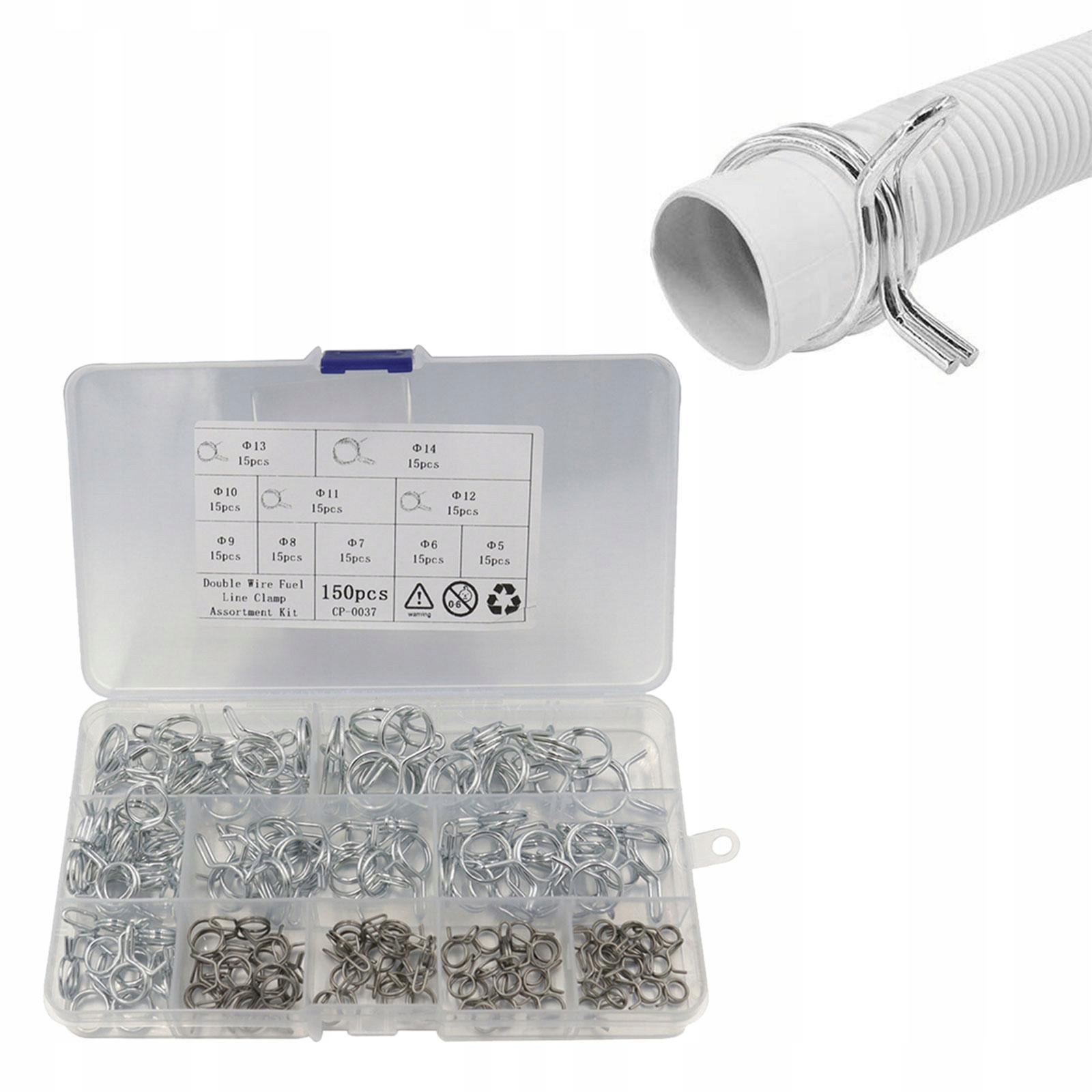 [Пакет в этом]: 150 кусочков набора пружинных шланговых зажимов с двойным проводом, в том числе 10 размеров, 15 штук: 5 мм, 6 мм, 7 мм, 8 мм, 9 мм, 10 мм, 11 мм, 12 мм, 13 мм, 14 мм. Материал из углеродной стали, профессиональное производство, устойчивое к потреблению, твердое и долговечное.