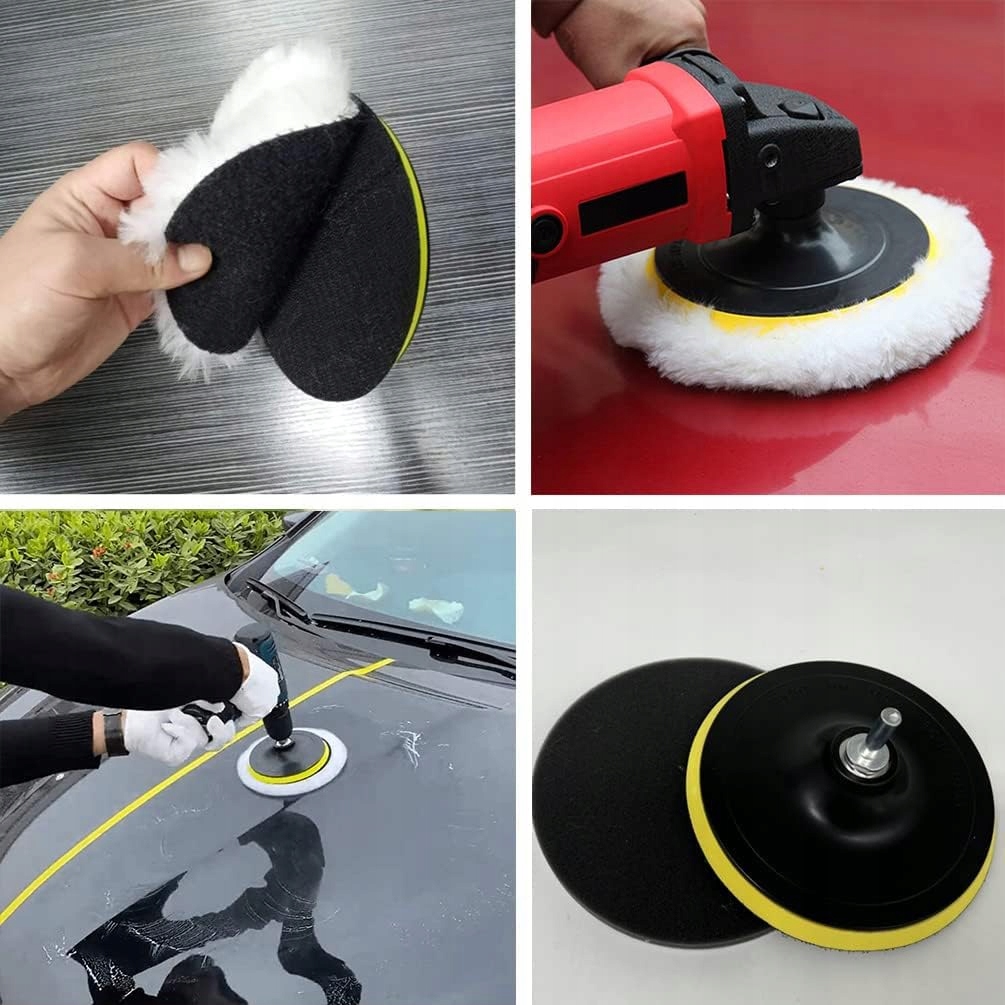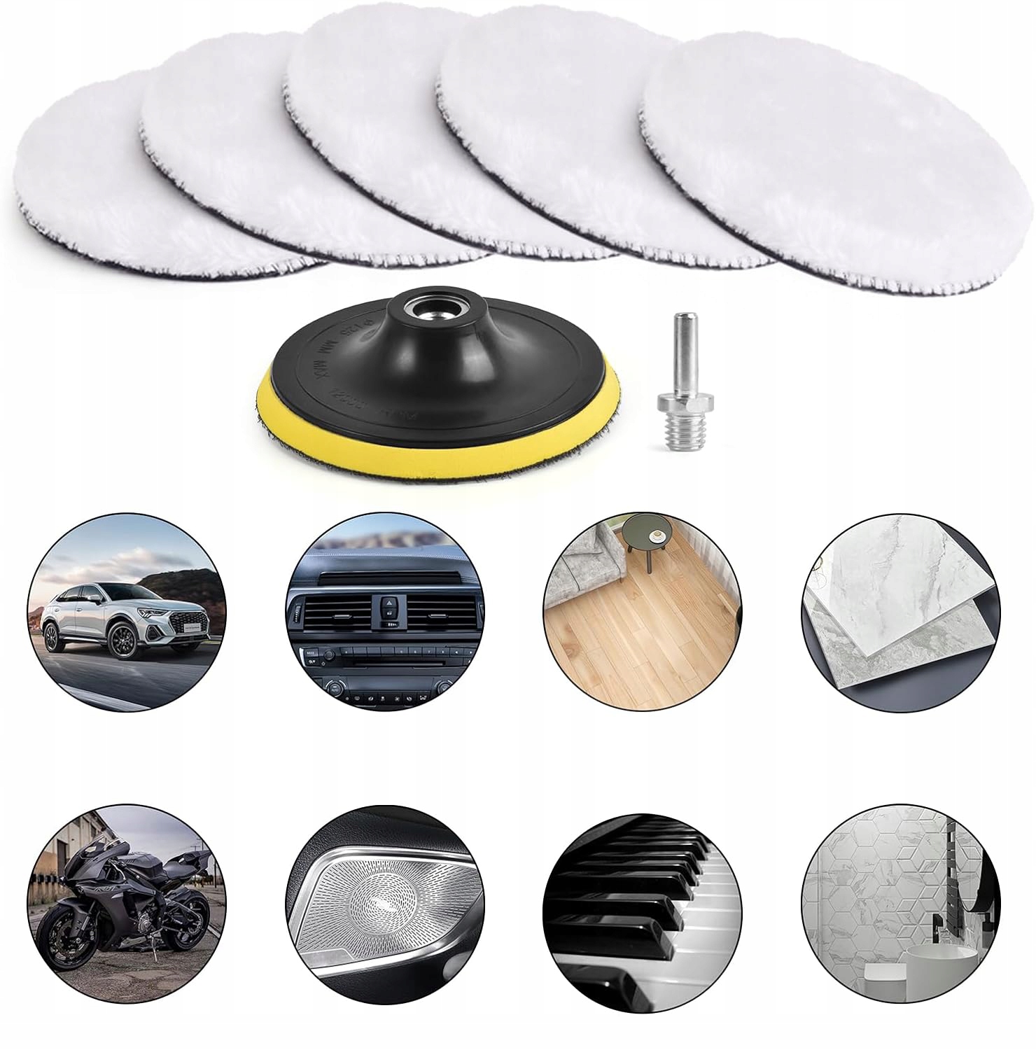 🚘【 набор из 7 частей】 Комплект для полировки автомобиля содержит 5 шерстяных полировочных покрытий, 1 полировочный шасси, 1 адаптер M14, который может удовлетворить ваши потребности для многих приложений и может соответствовать различной мощности упражнений. Его можно использовать с пневматическими или электрическими учениями, углами, электрическими измельчиками, полировщиками и другими инструментами для шлифования.