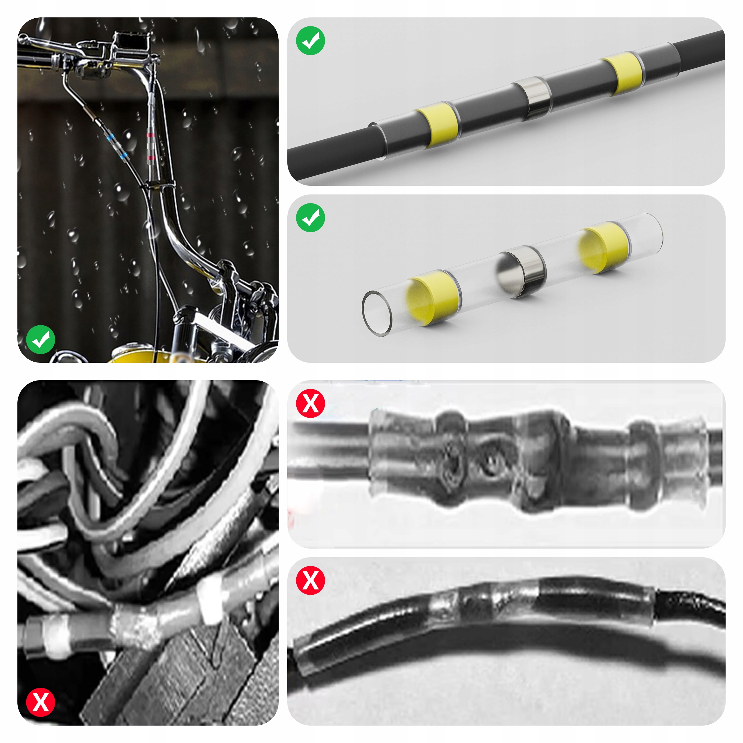- Простая операция: просто положите 2 изолированных кабеля в пайку и нагрейте его с помощью пистолета с горячим воздухом, а изоляционная трубка будет сжиматься с коэффициентом сокращения 3: 1, создавая водонепроницаемое уплотнение, чтобы закончить соединение