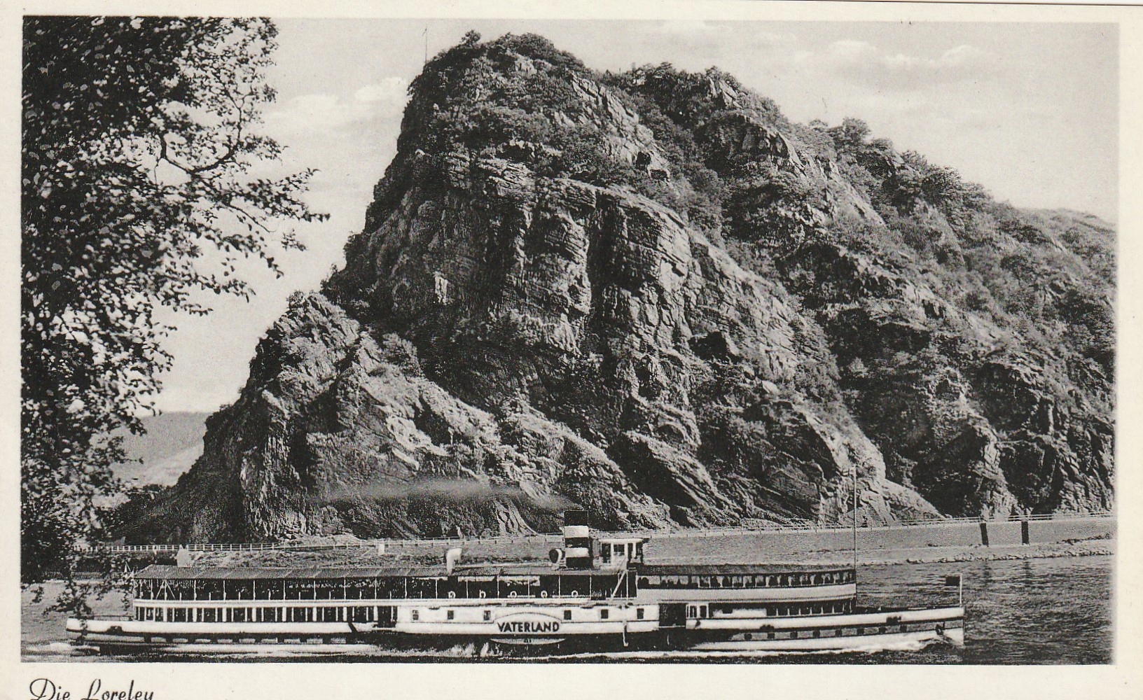 1596. Німеччина - Вид на Рейн, Лорелей і пароплав