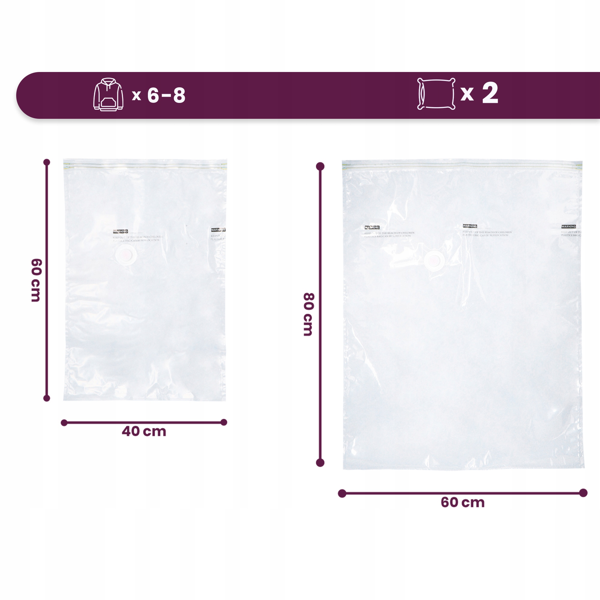 Вакуумные пакеты для одежды 12 х XS (40 см х 60 см), 3 х М (60 см х 80 см) с клипсами 4 шт.