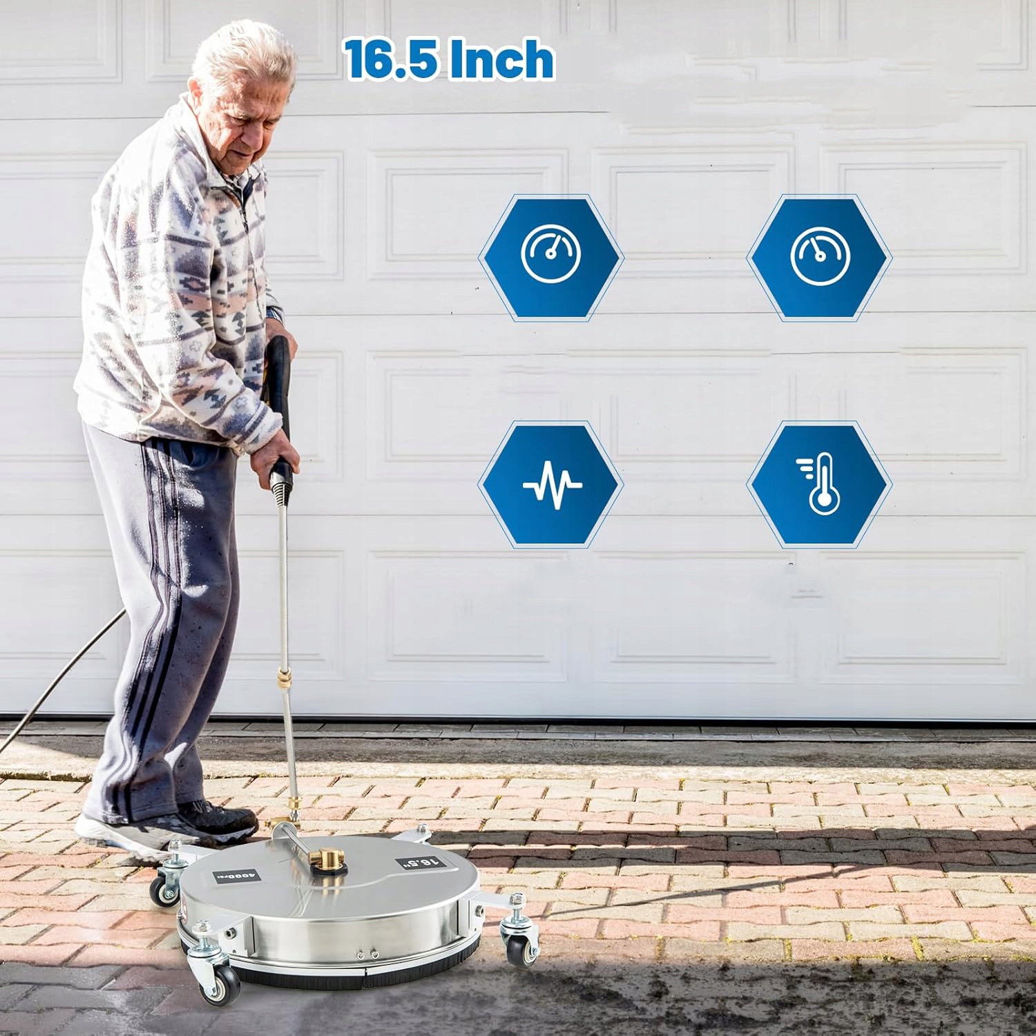 ➡ Многие применения: Эта стиральная машина идеально подходит для очистки постоянных пятен на больших плоских поверхностях, таких как улицы, внутренние дворы, террасы и тротуары.