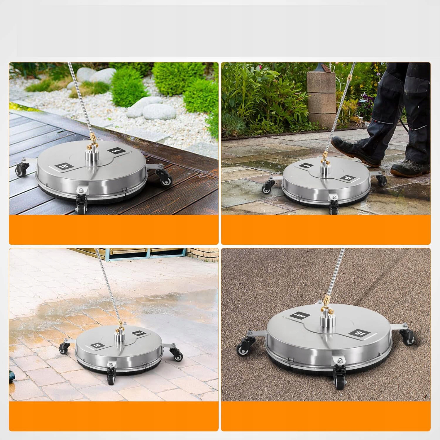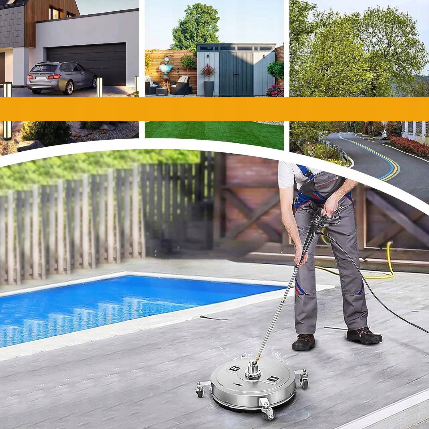 ➡ Широко совместимо: шайба пола совместима с большинством газовых и электрических машин для очистки давления с давлением от 2000 до 4000 фунтов на квадратный дюйм, от 1,8 до 3,7 галлонов в минуту. Практическое: Краткий разъем 1/4 дюйма может быть легко подключен к прикрепленной шайбу шины. Вход оснащен фильтром для предотвращения загрязнения. Оснащен 4 большими колесами, легко носить.