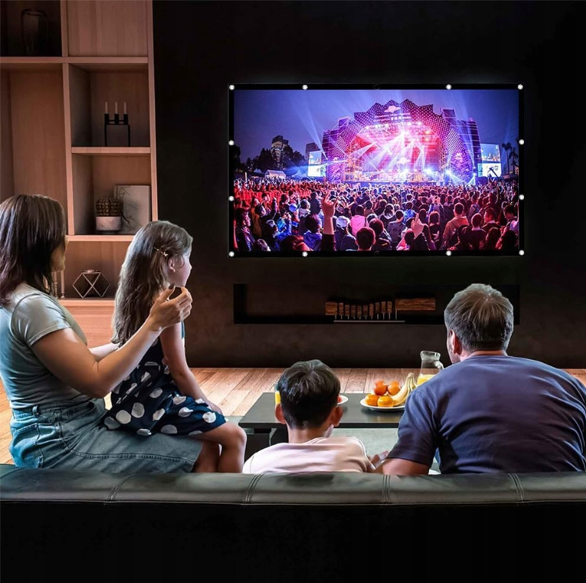 Этот внешний экран проектора с широким углом просмотра до 160 ° и большим размером 304,8 см, что означает, что вам не нужно сидеть прямо перед экраном проектора, просто выбирайте наиболее удобное отношение к просмотру, чтобы насладиться ночью в фильме. Даже если вы хотите пригласить соседей или друзей, чтобы посмотреть фильм вместе, он не будет выглядеть переполненным, потому что экран проектора нашего проектора поддерживает двойную проекцию