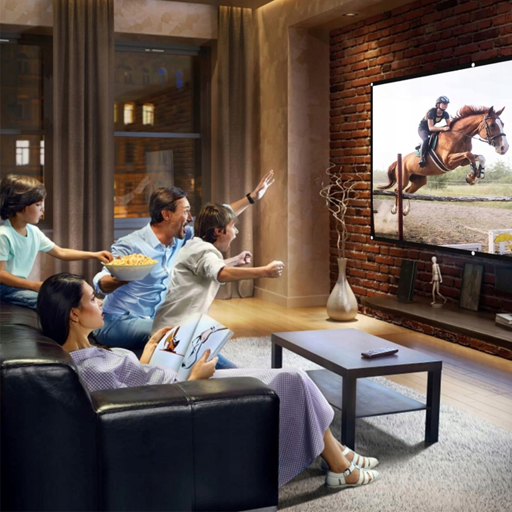 На этом 120-дюймовом экране проектора используется материал из полиэфира для обеспечения после складывания или сжатия, обеспечивая более четкие изображения, более яркие цвета и отсутствие цвета цвета. На экране не будет пятен, которые могут повлиять на визуальные впечатления и достаточно толстые, чтобы не увидеть, что за ним