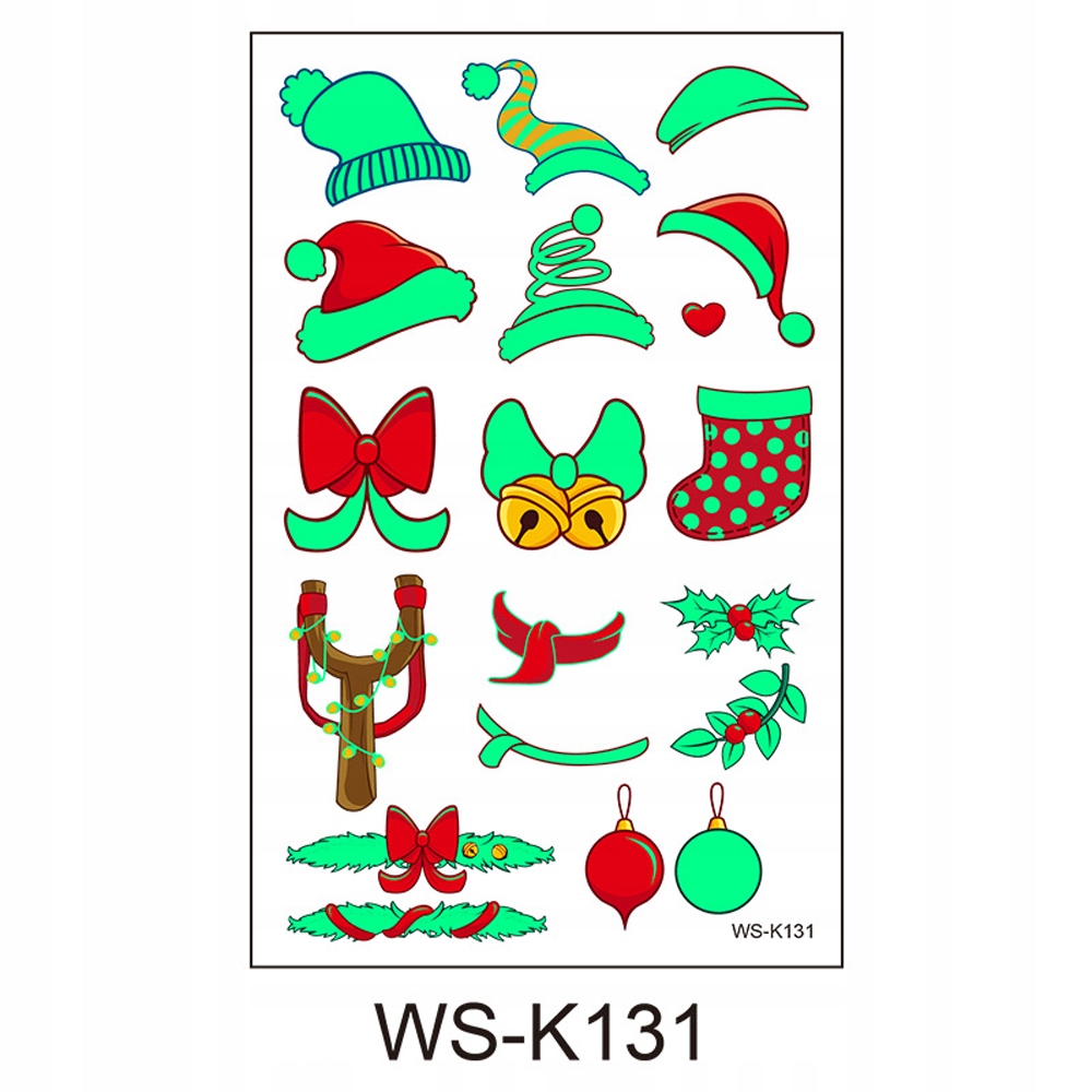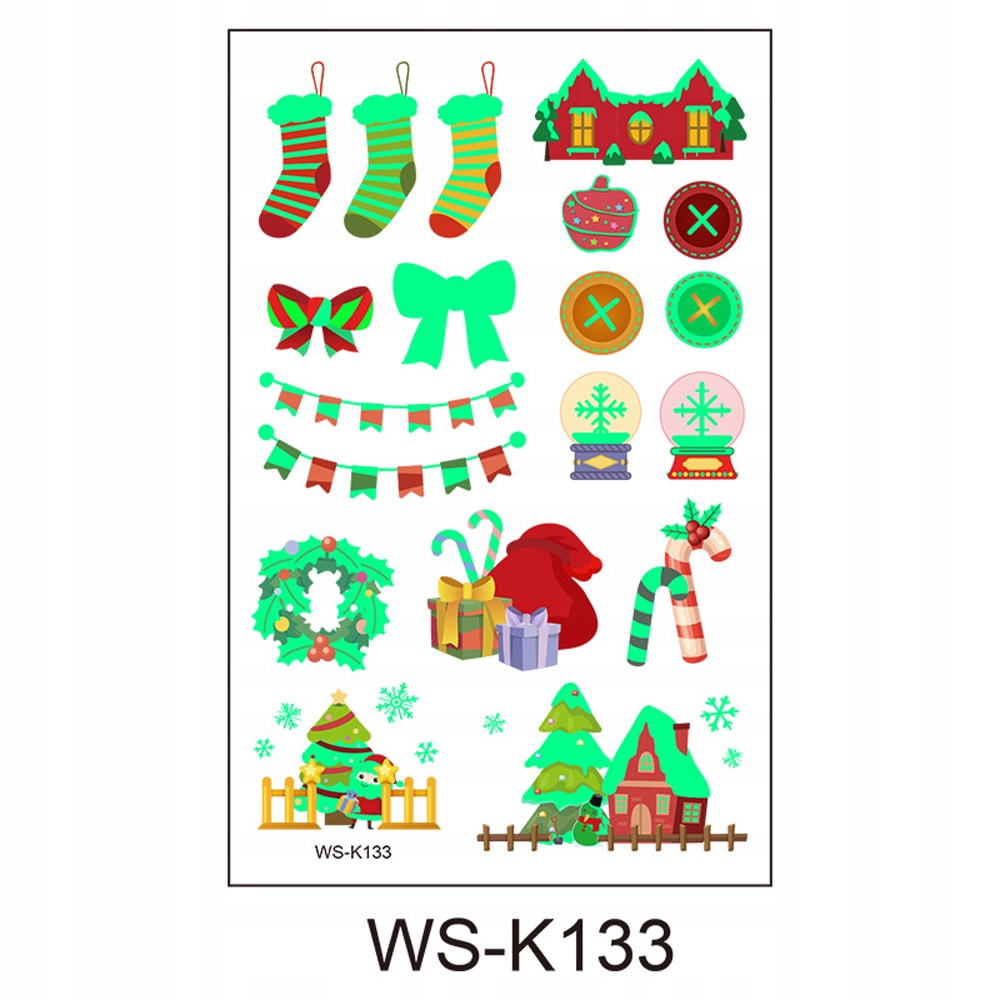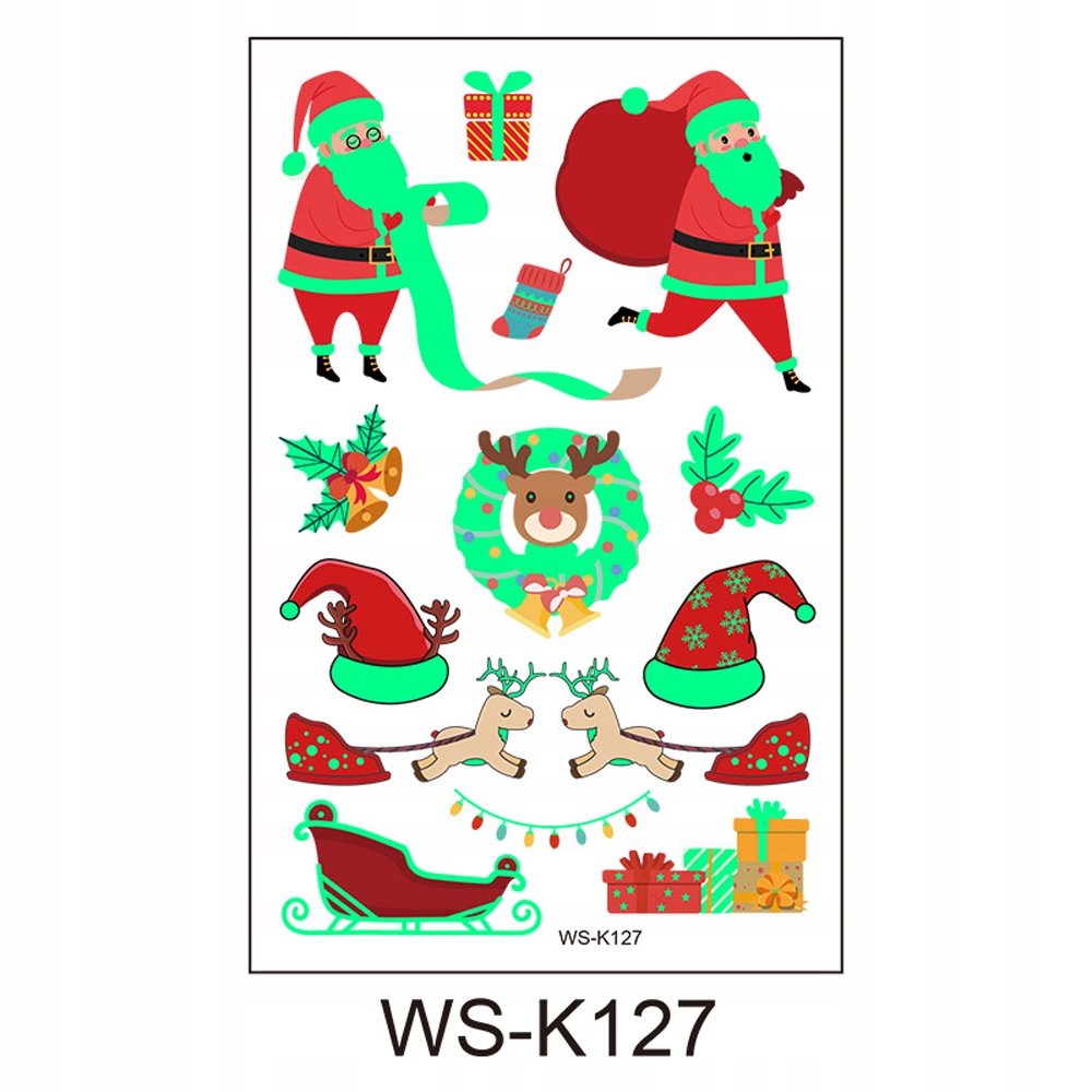 16 аркушів Різдвяні татуювання Світяться наклейки Тимчасові наклейки татуювання