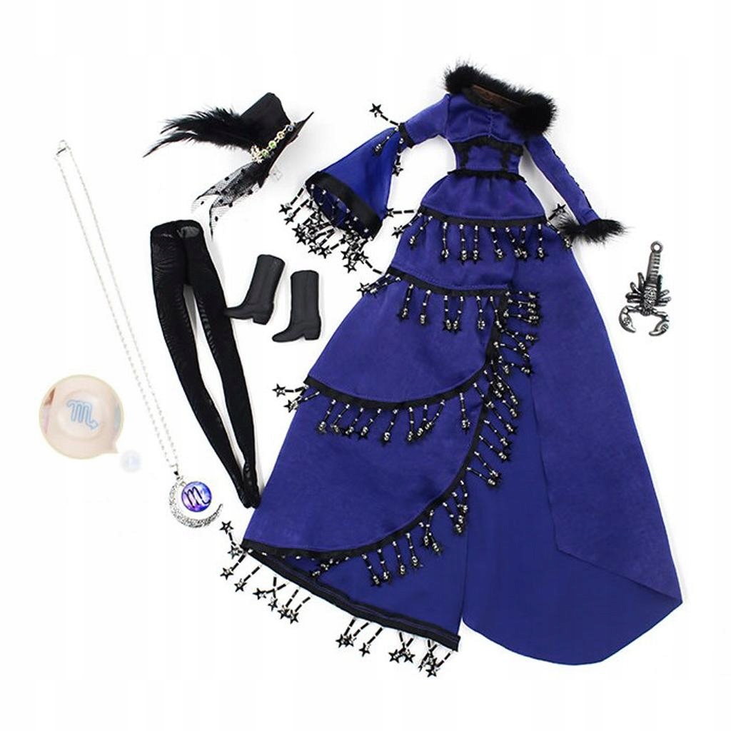 Включает в себя полный комплект костюмов, обуви, подставки и других аксессуаров.