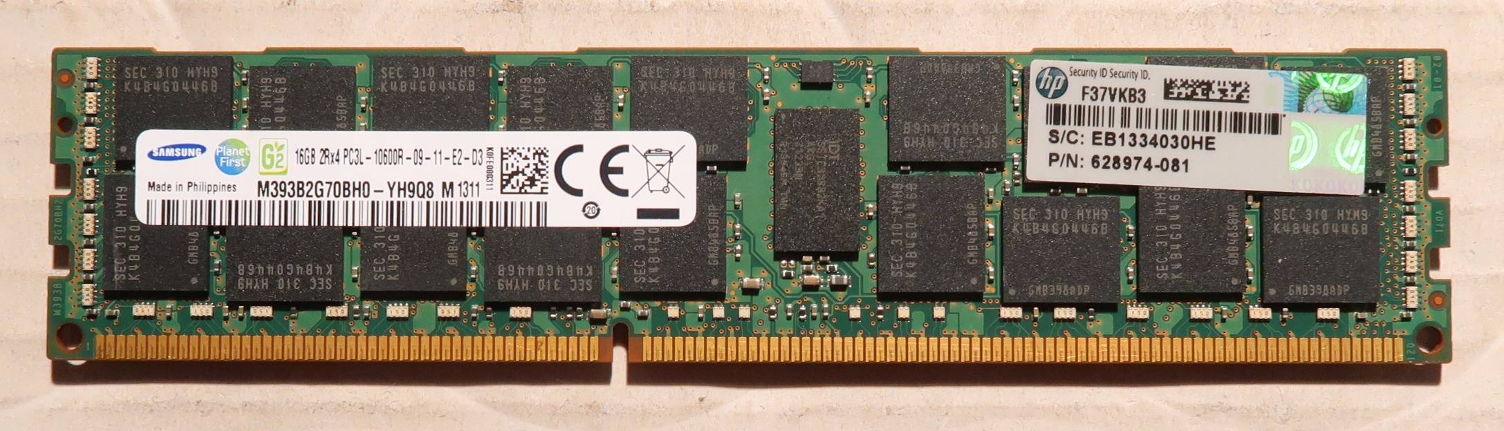 Полностью эффективная «сервер» память »16 ГБ DDR3 PC3L-10600R 1333 МГц ECC-regimm Rdimm Samsung M393B2G70BH0-yh9q8 (16 ГБ в одной кости).