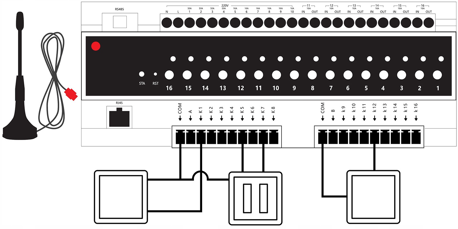 - COM: Общий порт для разделов 1–8 для ручных переключателей