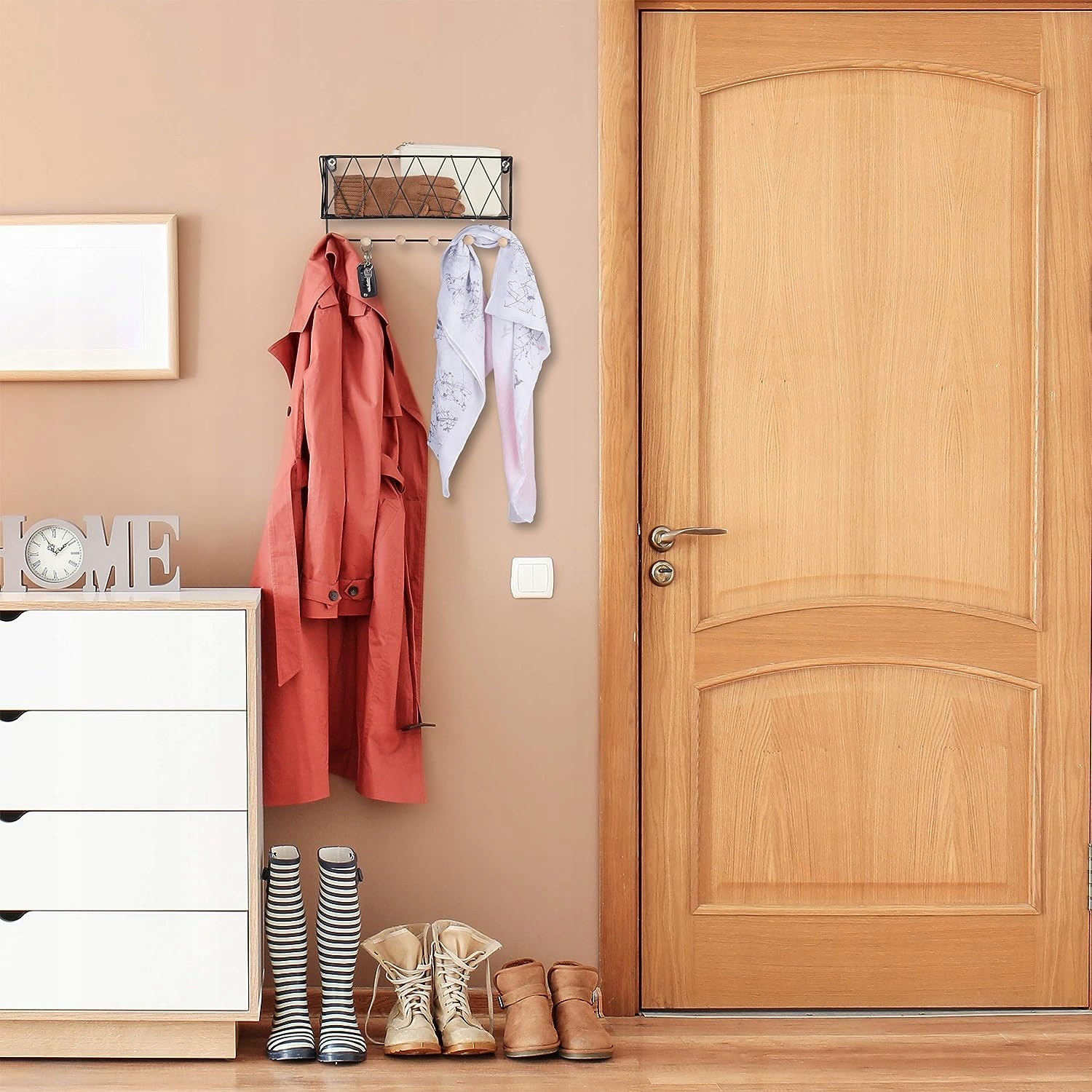 - Гардероб: коридорная полка идеально подходит для подвешивания курток, пальто, головных уборов, ключей и многого другого.