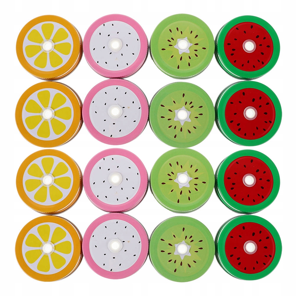 НАБОР 16 КРЫШЕК ДЛЯ БАНОК С ОТВЕРСТИЕМ ДЛЯ СОЛОМКИ, ФРУКТОВЫЙ УЗОР, ЛУЖЕВАЯ КРЫШКА, ВЕРХНЯЯ КРУЖКА