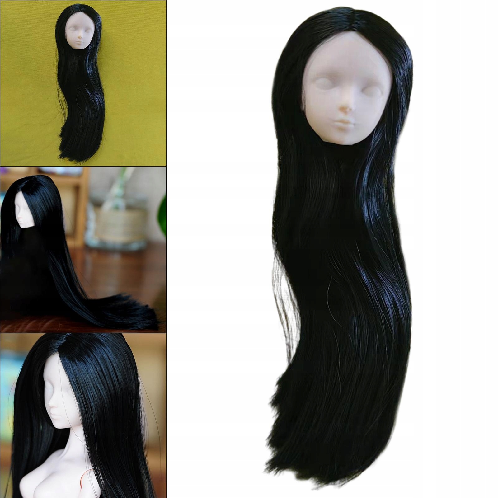 1/6 Scale Girl Head Sculpt Doll Accessories Long Hair Black пряме волосся