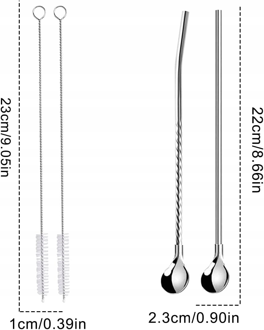 Размеры - ок. 21,5 х 2,5 см, каждая металлическая соломинка 2 в 1 весит ок. 12 г, легкий и удобный, легко носить с собой.