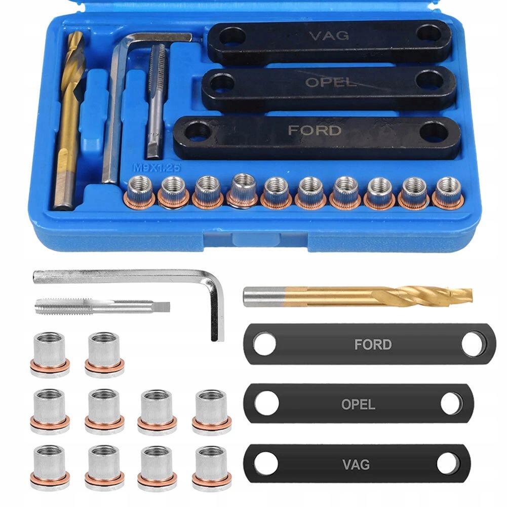 ➡️В комплект входит метчикM9x1,25 для ремонта слегка поврежденной резьбы. В комплект входит шаблон для сверления автомобилей VW, Opel и Ford. В комплект входит шестигранный ключ на 7 мм для вкручивания и выкручивания направляющих винтов. Поставляется в практичном футляре.