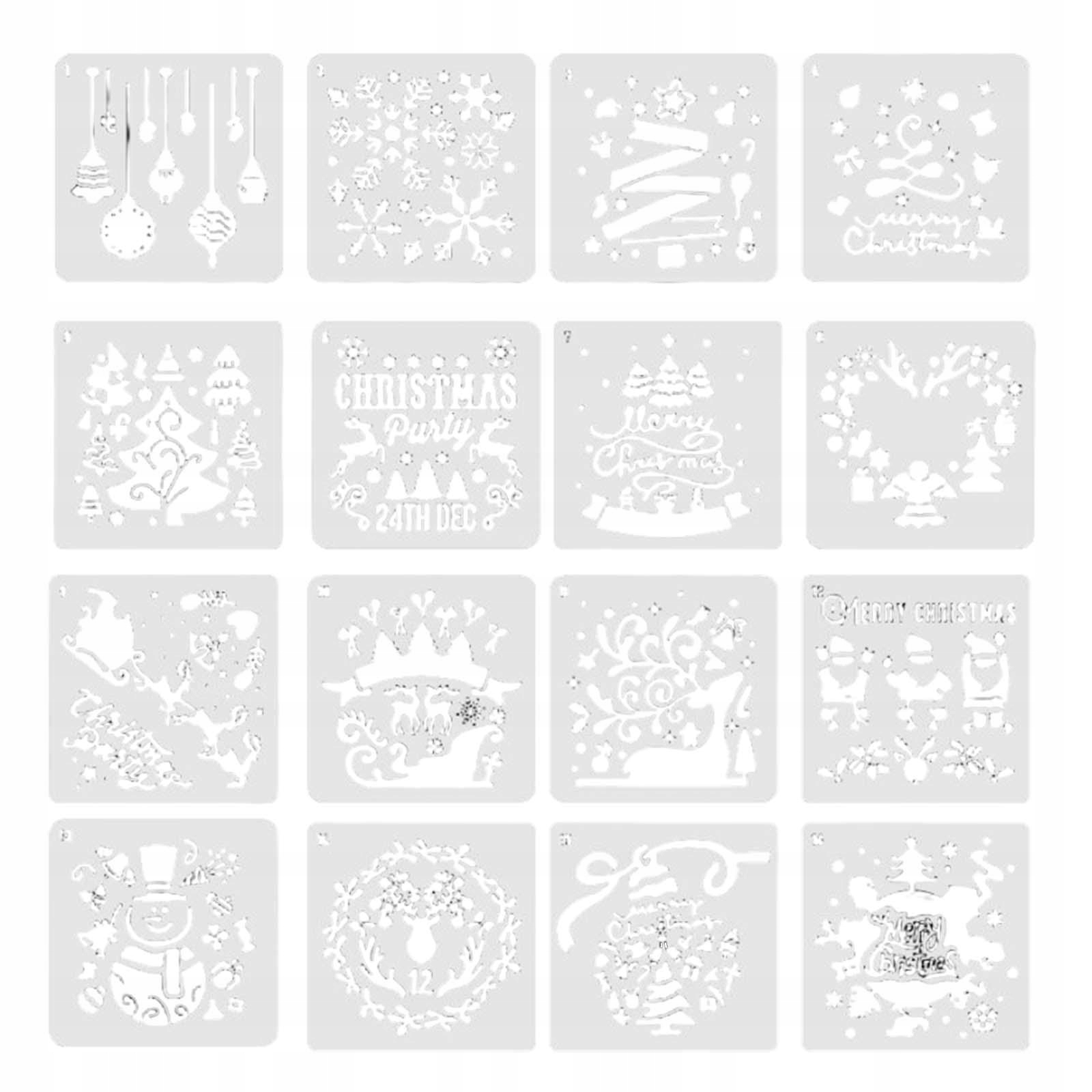 Набор рождественских трафаретов, 16 шт., шаблоны для рисования для изготовления открыток, напольное окно