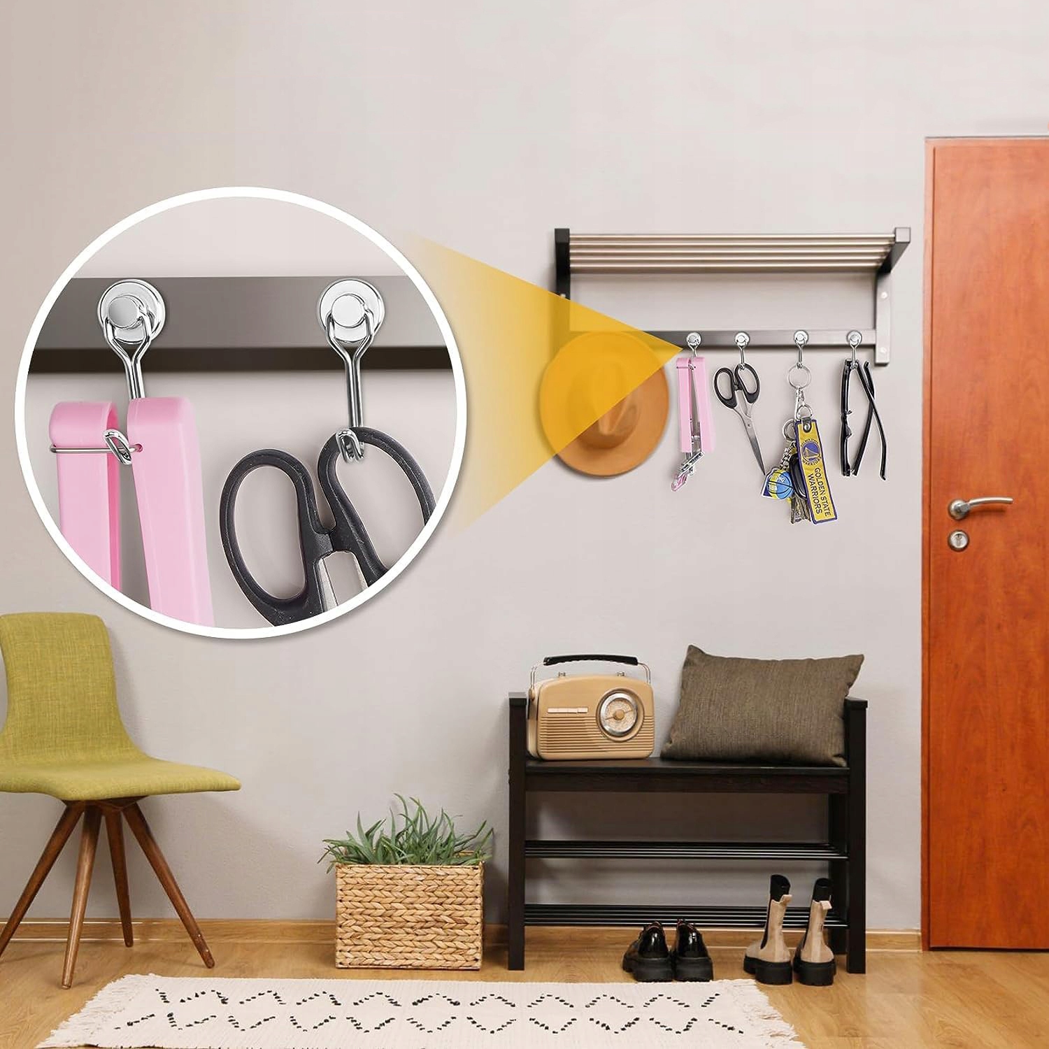 👍👍👍【Прочные магниты с мини-крючками】 Не стоит недооценивать силу этих миниатюрных крючков. магниты. Они имеют компактный диаметр 16 мм, но их максимальная вертикальная нагрузка составляет 15 кг, а горизонтальная — 5 кг. Эти мощные магниты позволяют надежно прикрепить и разместить календари, кухонную утварь, ключи или другие легкие предметы на магнитных поверхностях, таких как холодильники.