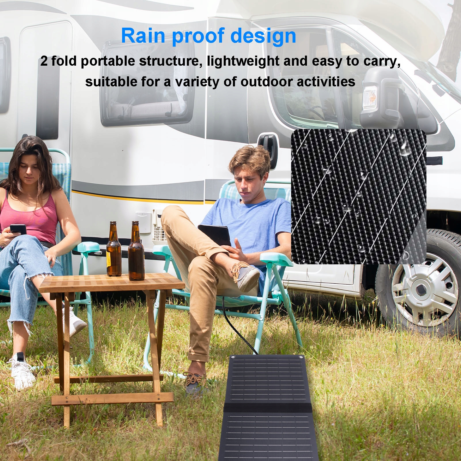 4. Портативная двухсторонняя структура: легкая, двухсторонняя конструкция солнечной панели облегчает их износ, идеально подходит для внешних классов, обеспечивая загрузку устройств в любое время и где бы вам ни нужно.