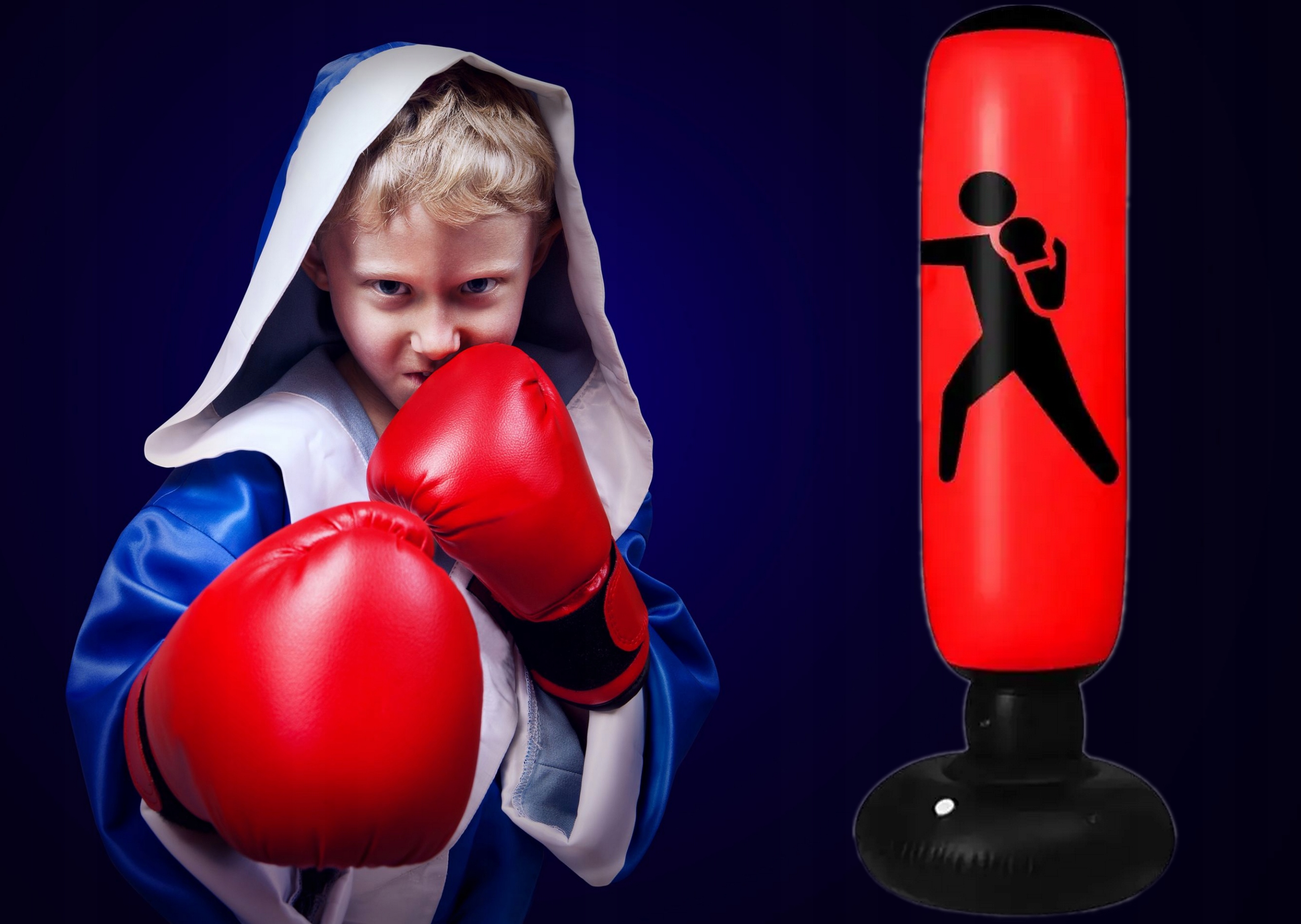 Надувной боксерский мешок предназначен для активного времяпрепровождения детей, его также можно использовать для развлекательных тренировок по боксу дома или в саду для всей семьи. . Возвращается в вертикальное положение после каждого удара.