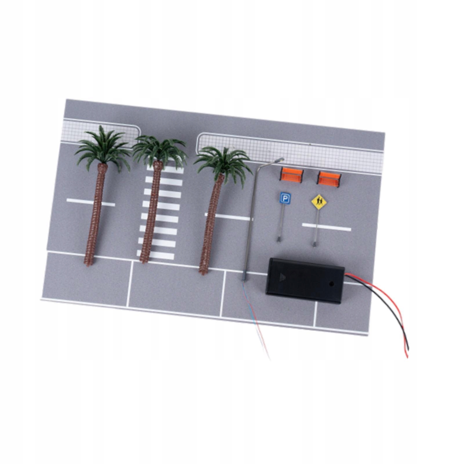 [Комплексный набор]: Наш модельный набор содержит дорогу, два дорожных знака, уличные лампы, три кокосовых деревья, два места для отдыха и контейнер с батареей АА (не включенные в сет). Цвета добавляют реалистичный характер в проекты ваших моделей