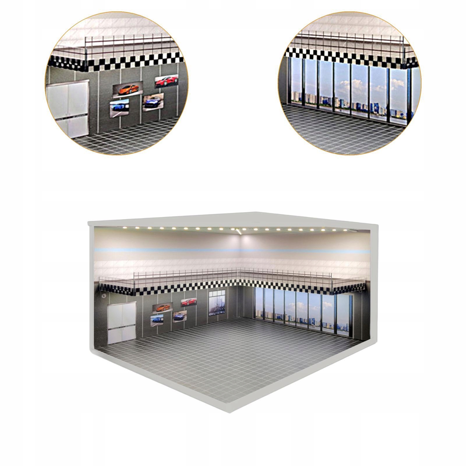 [при освещении]: модель гаража автомобиля имеет реалистичную парковочную сцену и оснащена встроенным светодиодным освещением. Просто поверните, чтобы осветить сцену