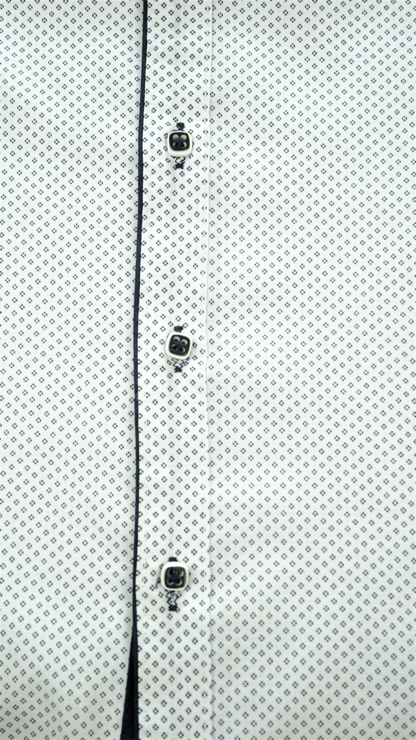 Темно-синяя окантовка на воротнике и планке с пуговицами.