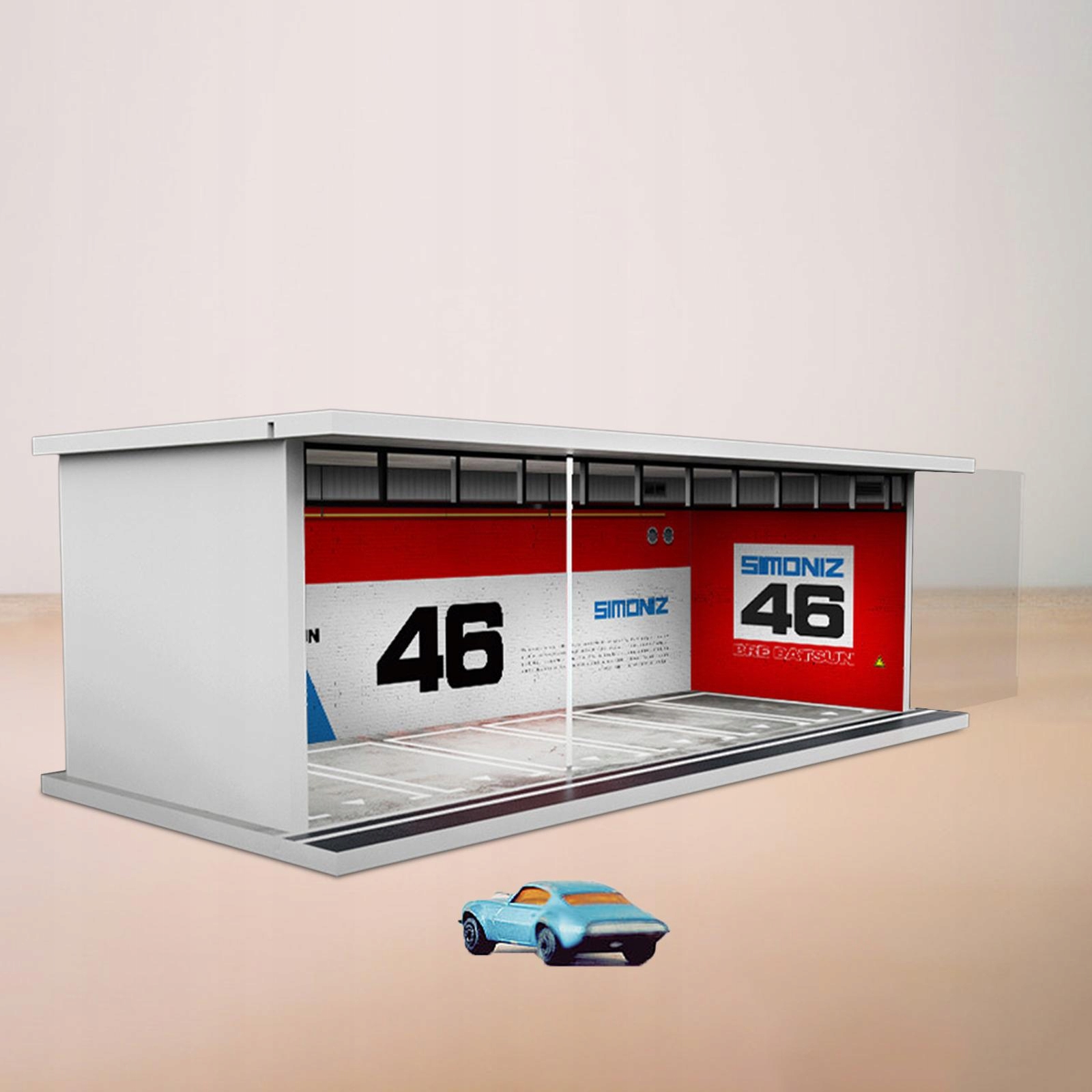 [Витрина для гаража]: имитация сцены парковки в масштабе 1/64 со светодиодной подсветкой, которую можно сочетать с куклами, моделями автомобилей, фотореквизитами, диорамами моделей парковок и т. д.