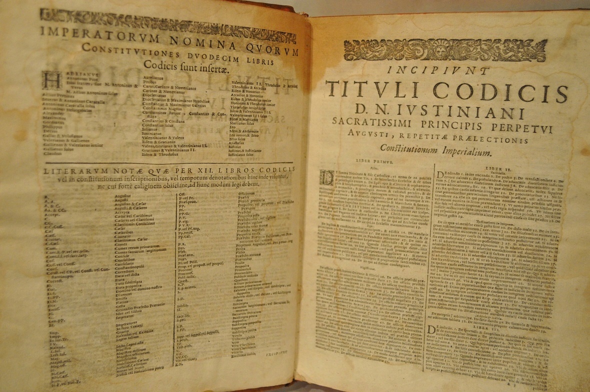 "Кодекс Юстиниана (лат. Codex Iustinianus) — одна из трёх частей великого сборника римского права, предпринятого в 528–534 гг. н.э. императором Юстинианом I Великим."