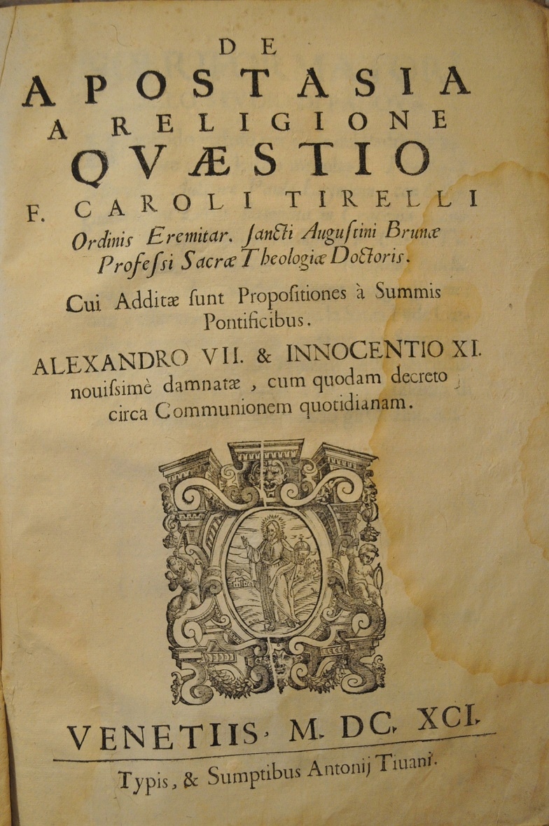 "Отступничество и религиозные вопросы, составлено Ф. КАРОЛИ ТИРЕЛЛИ"