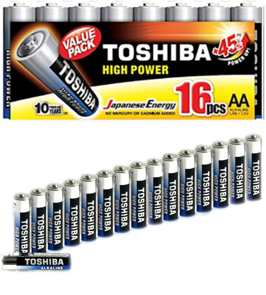 16x ЛУЖНА БАТАРЕЯ AA LR6 1,5 В TOSHIBA HIGH POWER MULTIPACK