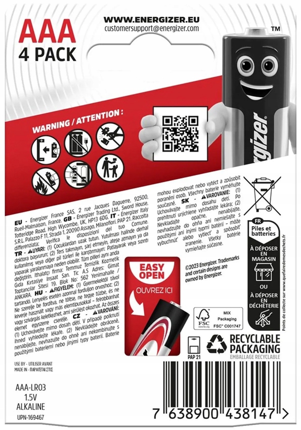 Просматривая «16x ЩЕЛОЧНАЯ БАТАРЕЯ ENERGIZER MAX SMALL FINGERS LR03 AAA R3 1,5 В», вы можете быть уверены, что данный товар из каталога «Зарядные устройства» будет доставлен из Польши и проверен на целостность. В цене товара, указанной на сайте, учтена доставка из Польши. Внимание!!! Товары для Евросоюза, согласно законодательству стран Евросоюза, могут отличаться упаковкой или наполнением.