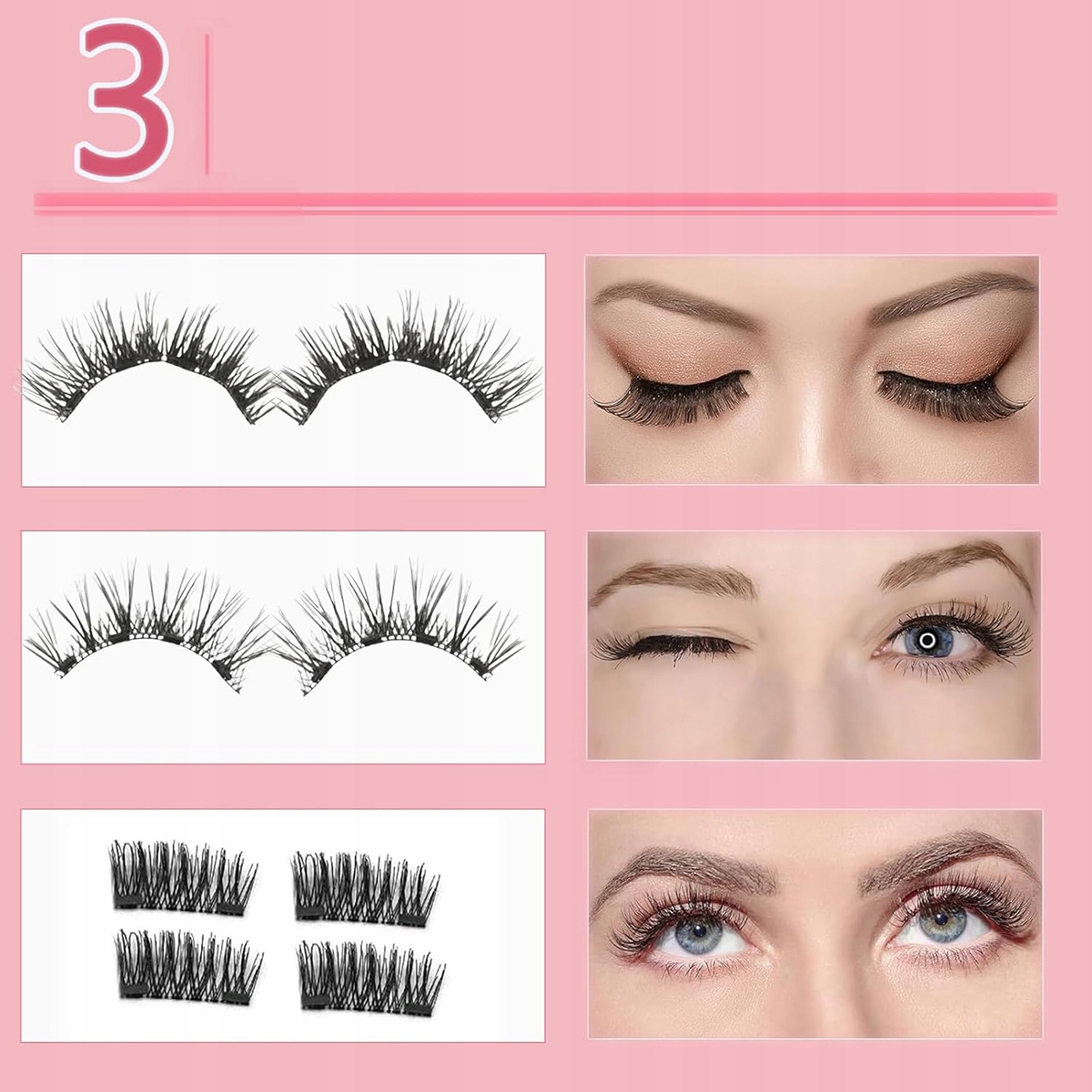 16x SZTUCZNE RZĘSY MAGNETYCZNE Rzęsy magnetyczne 3D nie wymagają eyelinera