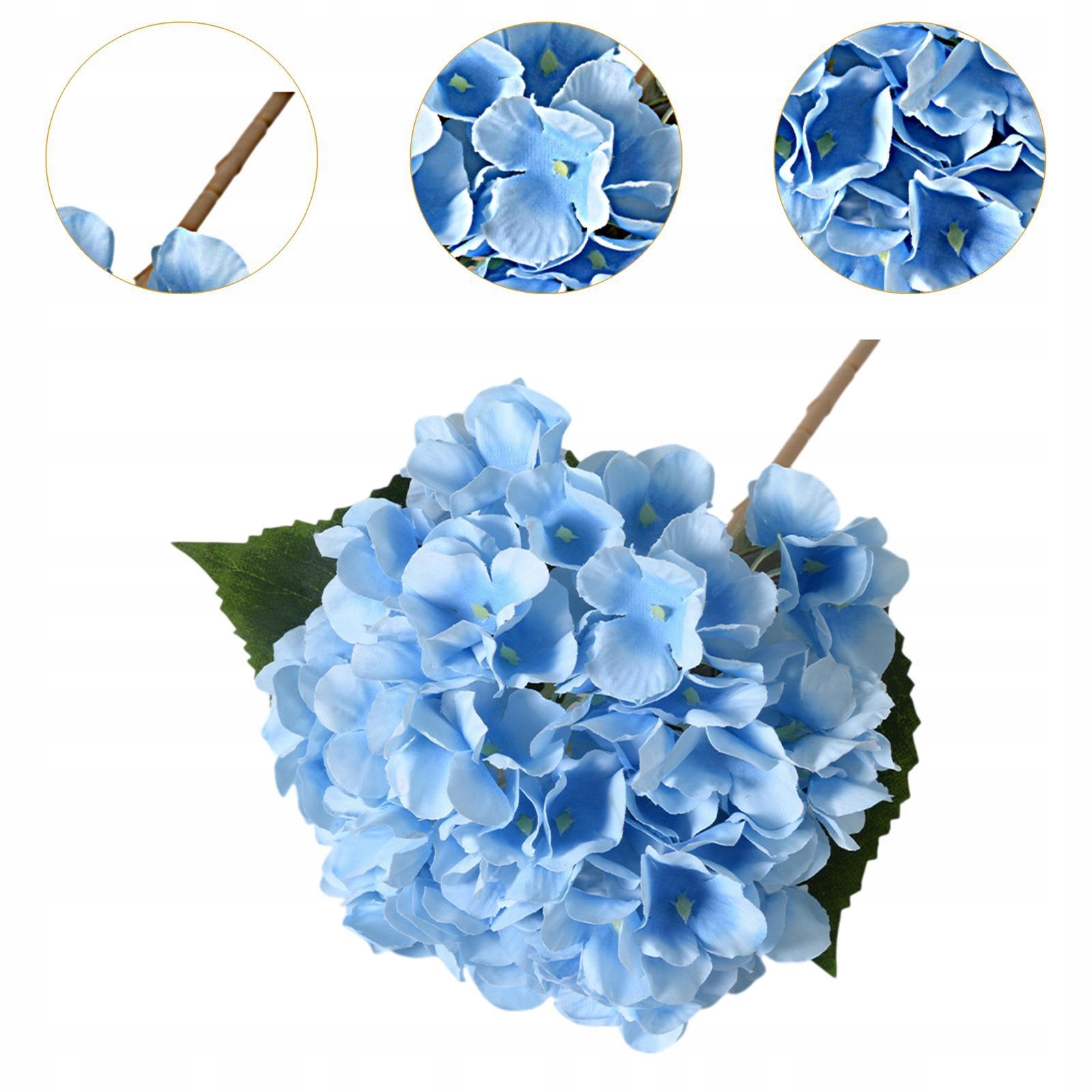 17,7-дюймовый искусственный цветок гортензии из шелковой ткани с зелеными листьями, сделанный своими руками, синий