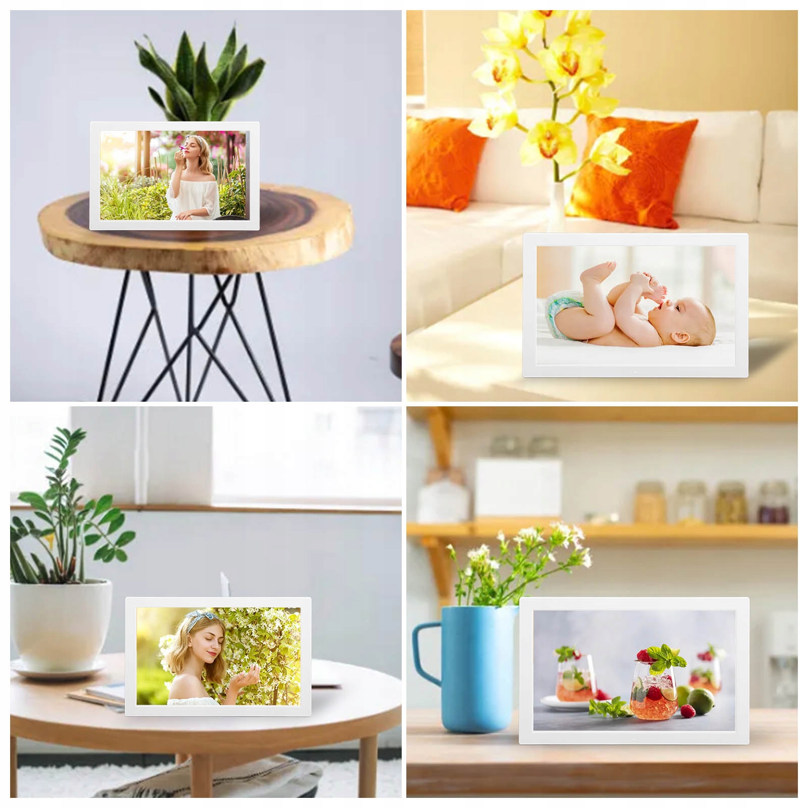4. Качество изображения высокой четкости: 17-дюймовая цифровая фоторамка, ЖК-экран 16:10, разрешение изображения 1080p, обеспечивающее идеальное зрение и прекрасные цвета, воспроизведение каждого захватывающего момента, представляя прекрасный визуальный праздник.