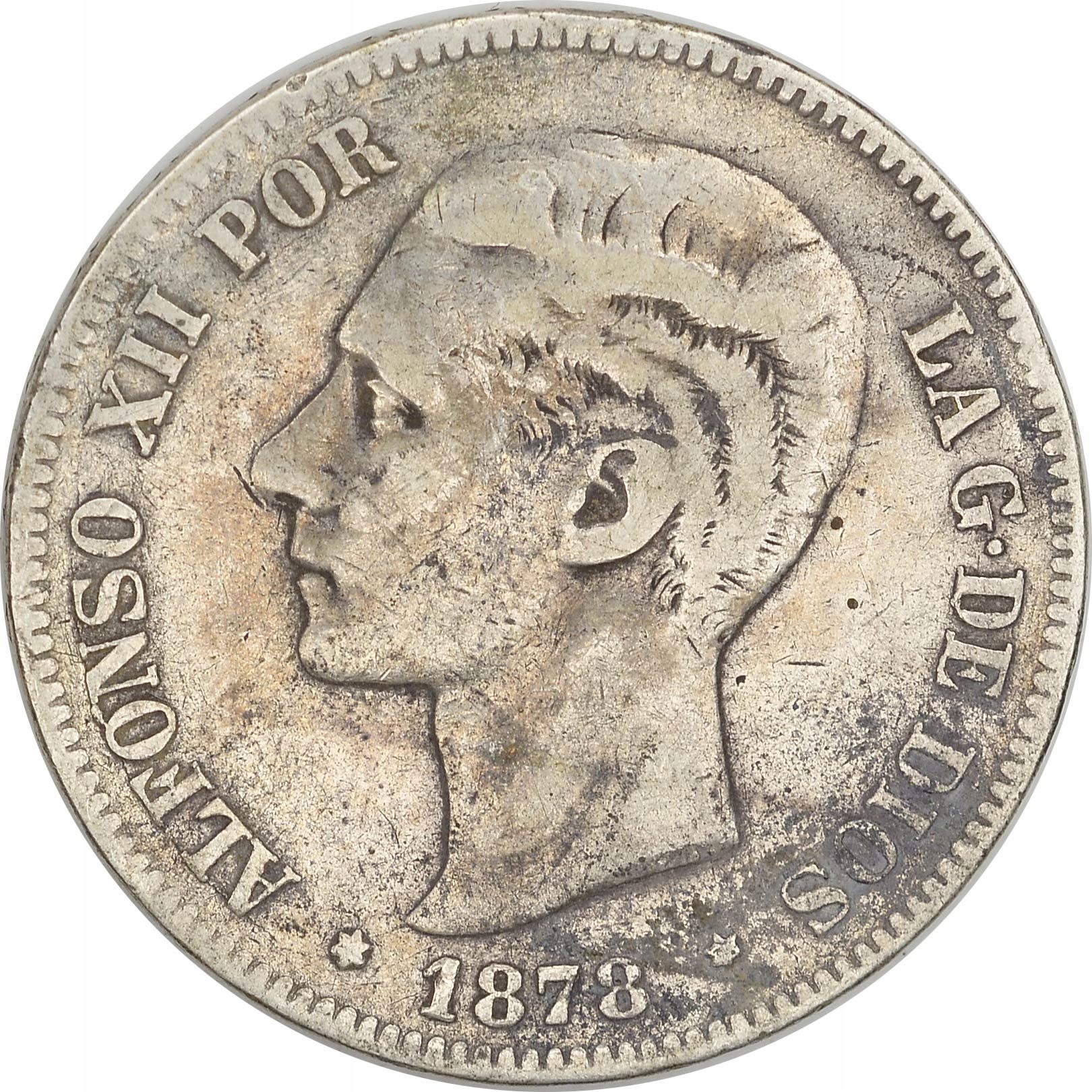 17.db.ІСПАНІЯ, АЛЬФОНС XII, 5 ПЕСЕТ 1878 ДЕ М