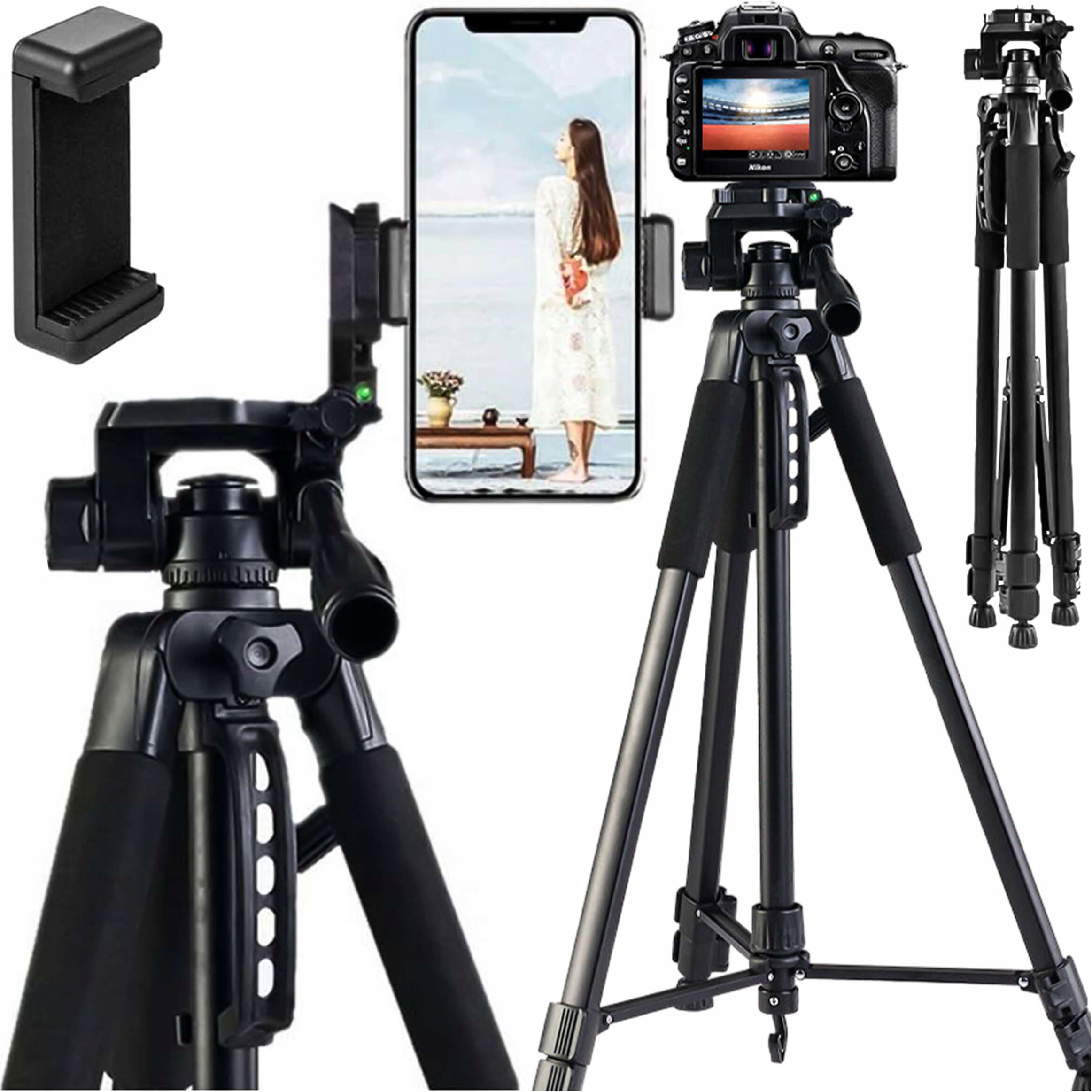 ✅ В комплект также входит специальный держатель для телефона, адаптированный к головке штатива.