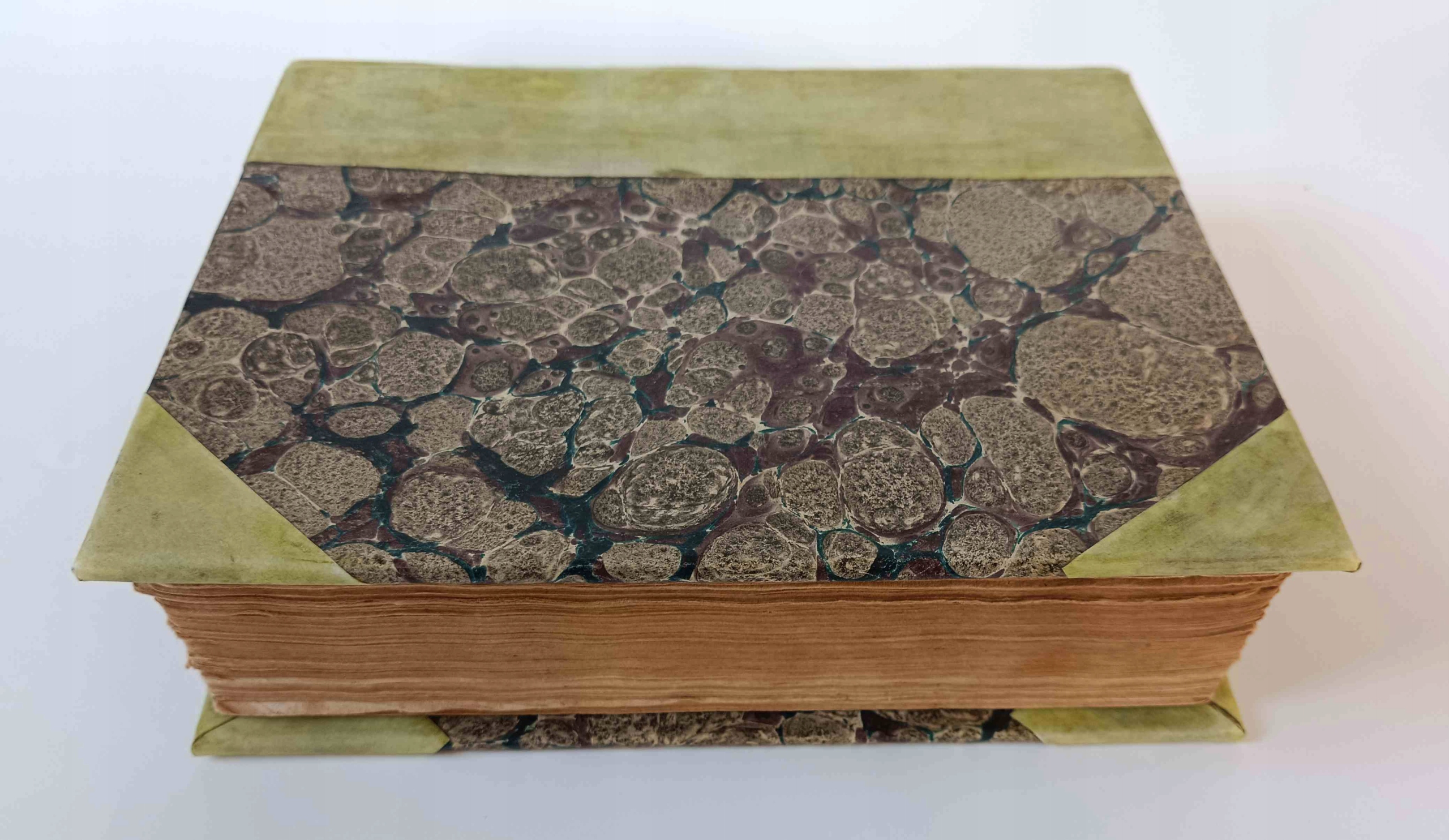 Дополнительно несколько небольших гравюр на дереве в тексте. Переплет ХХ века, стилизованный под старину, старинный мрамор, цветной полупергамент. Размеры примерно 16,5 x 21 x 5 см.