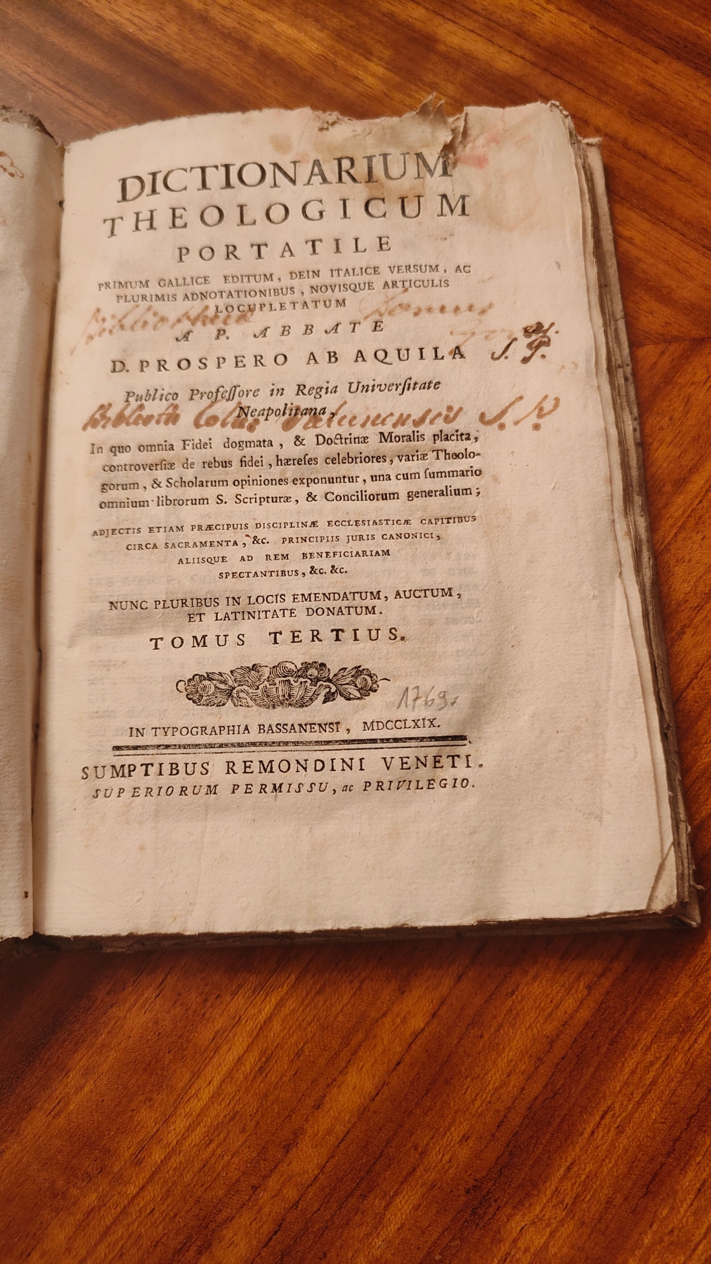 1769. DOCTIONARIUM THEOLOGICUM PORTATILE.