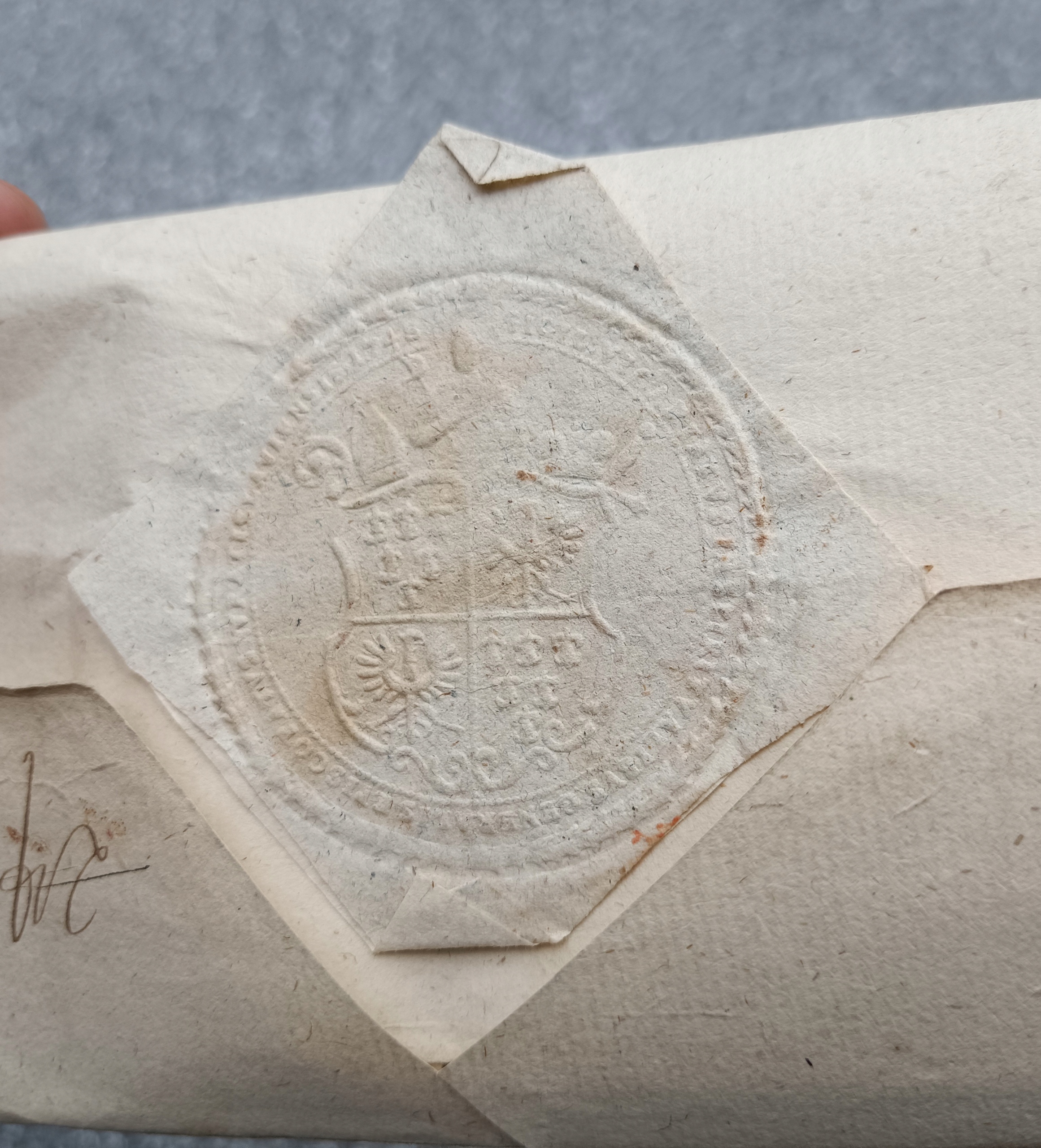 Письмо, составленное секретарем-мартином Шнайдером, подписанным Эрнестом фон Страчвитом-Прататом и Архидиаконом, владельцем многих товаров в Силезии.
