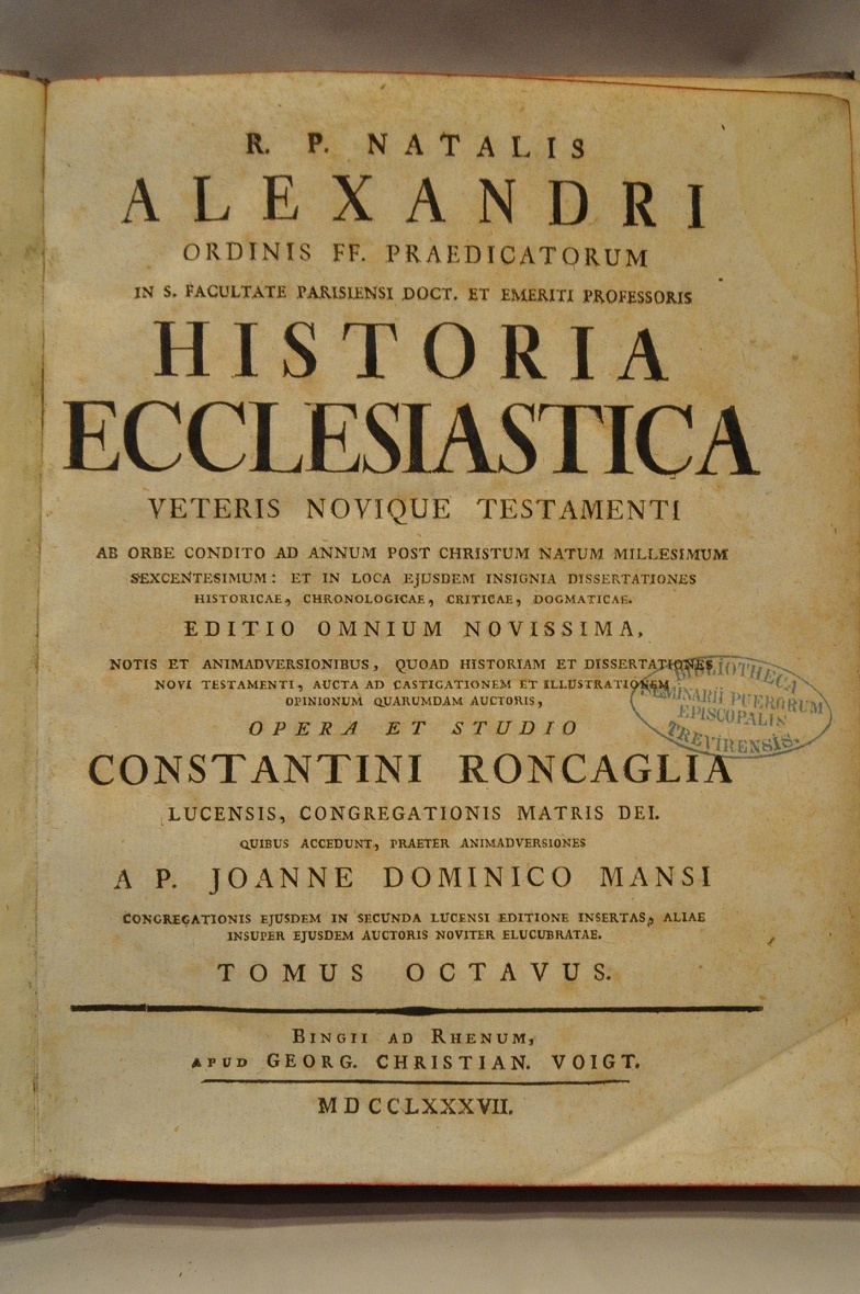 "Ноэль Александр (на латыни Наталис Александр ), родившийся 19 января 1639 года в Руэне; он умер 21 августа 1724 года в Париже; Человек -церковный историк и французский янсенист -теолог".