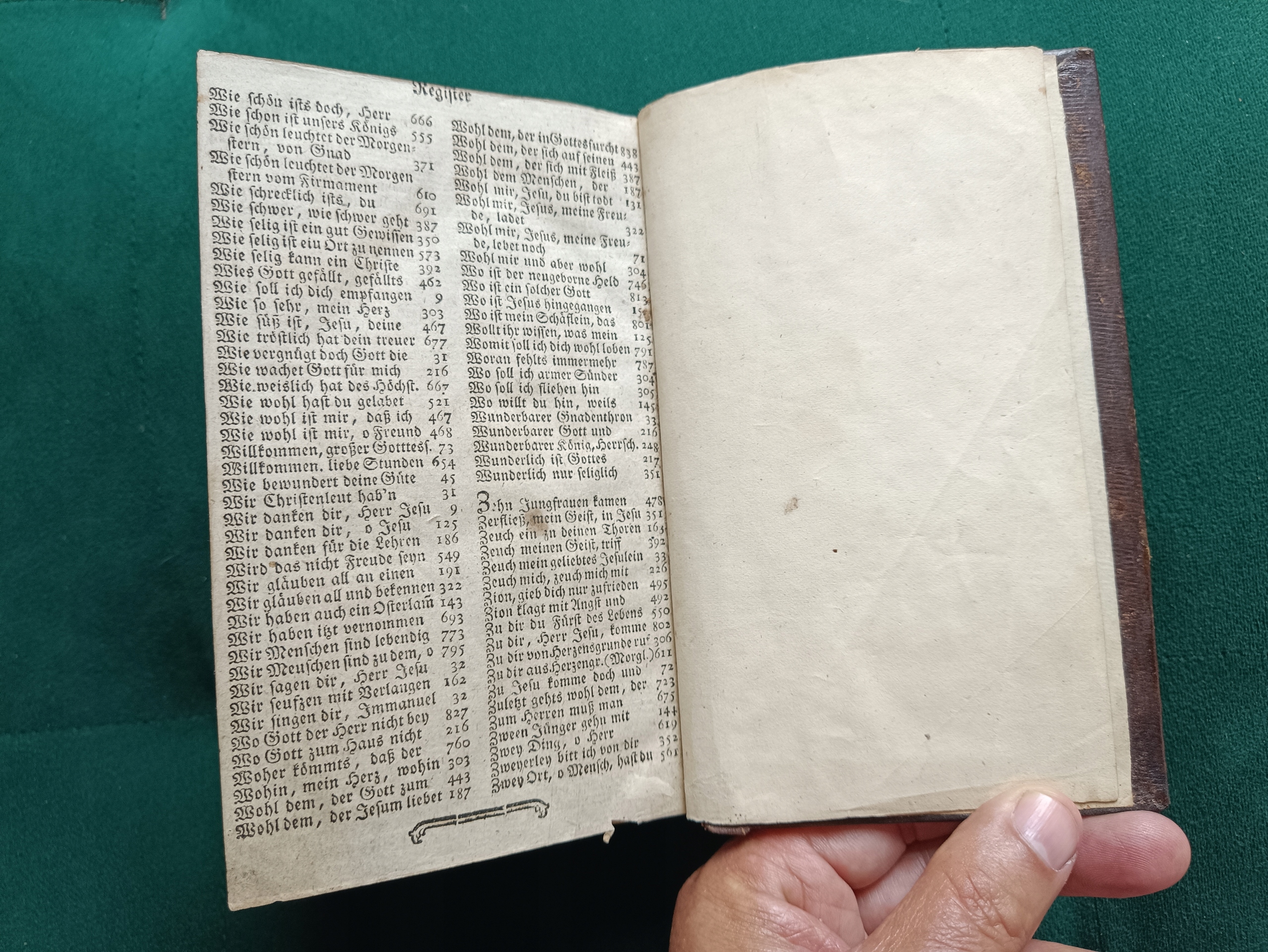 Как указано на титульном листе, песенник содержит 1500 новых и старых песен, написанных для верующих Евангелической церкви в Еленей-Гуре.